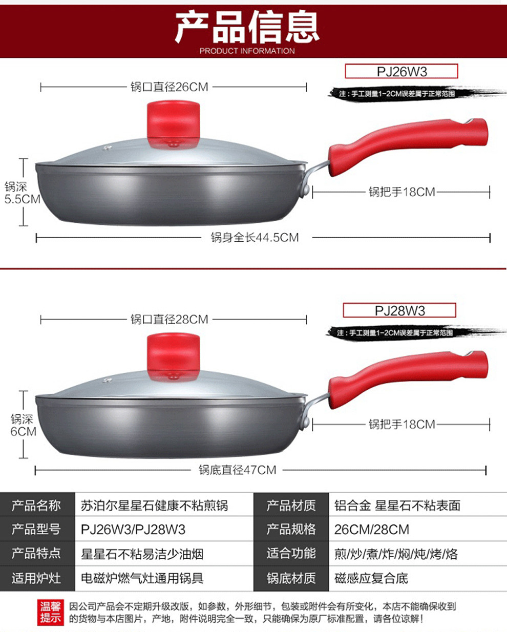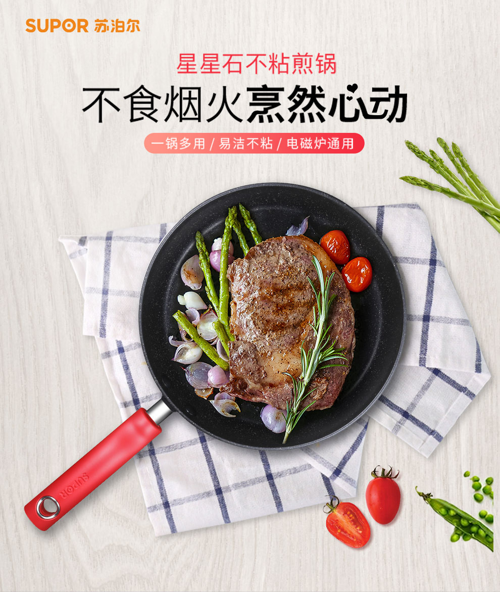 苏泊尔 健康不粘煎锅麦饭石色炒菜锅 PJ26W3-26CM