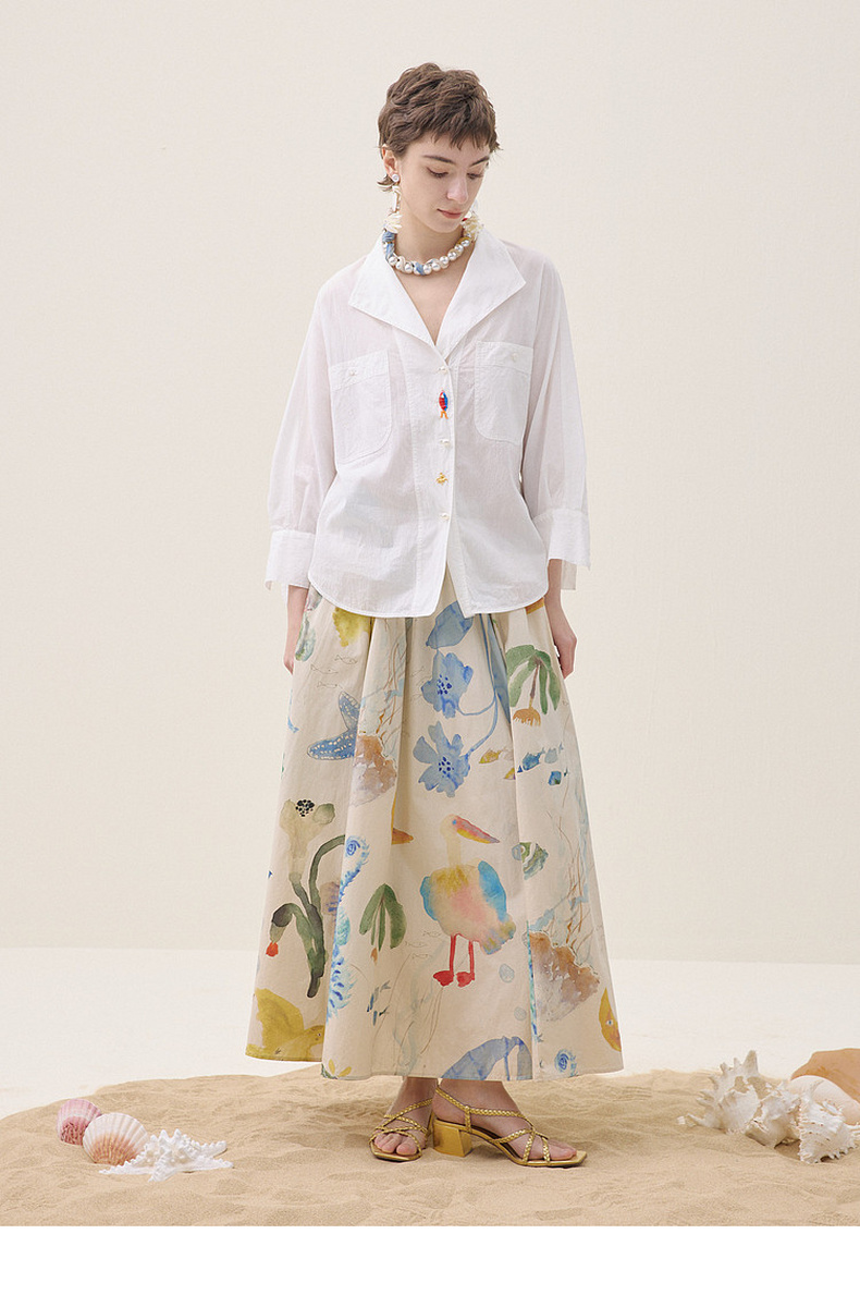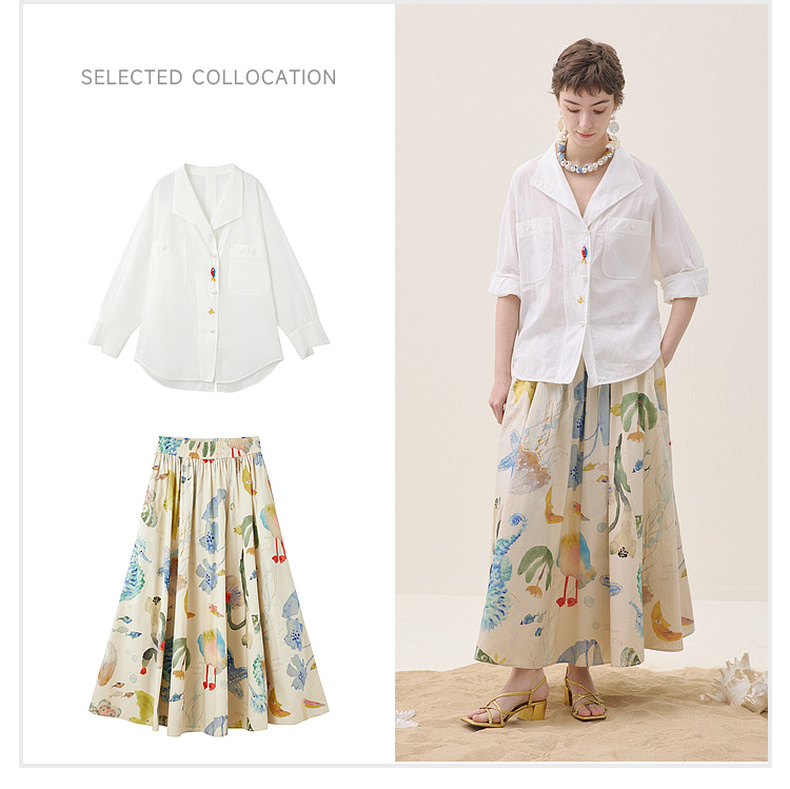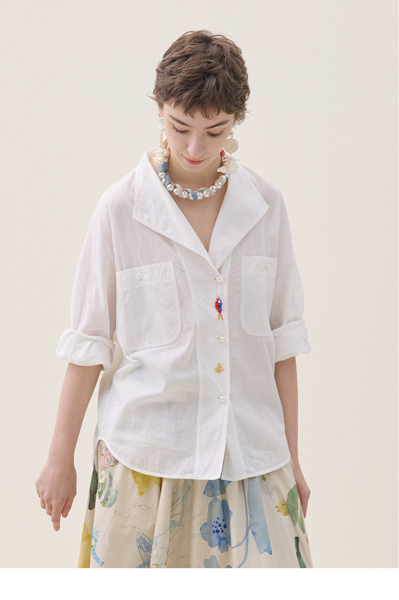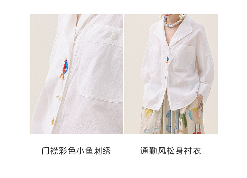 谜底白衬衣中袖2026年夏季新品翻领刺绣清新通勤衬衫女262MC0607