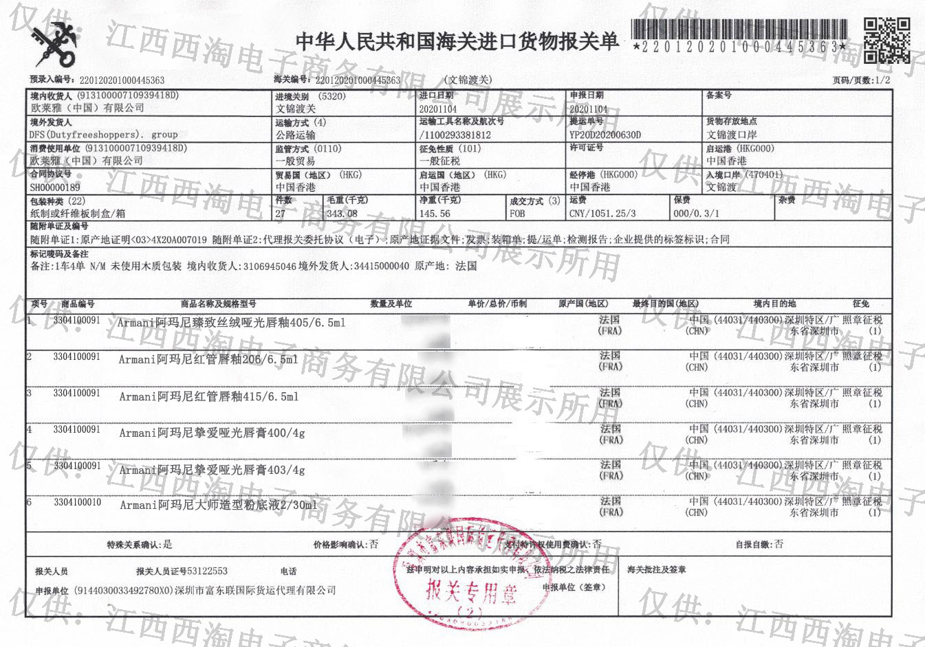 新款阿玛尼挚爱香水四件套7ml*4支红色SI