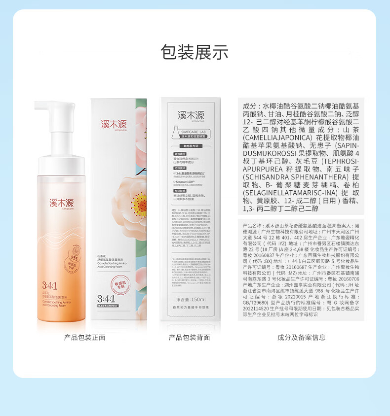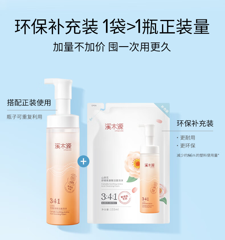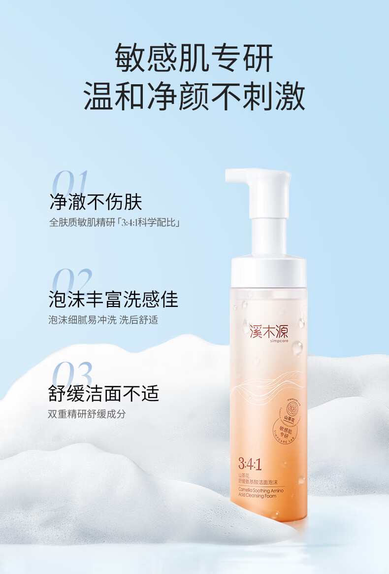 溪木源 山茶花舒缓氨基酸洁面泡沫150ml