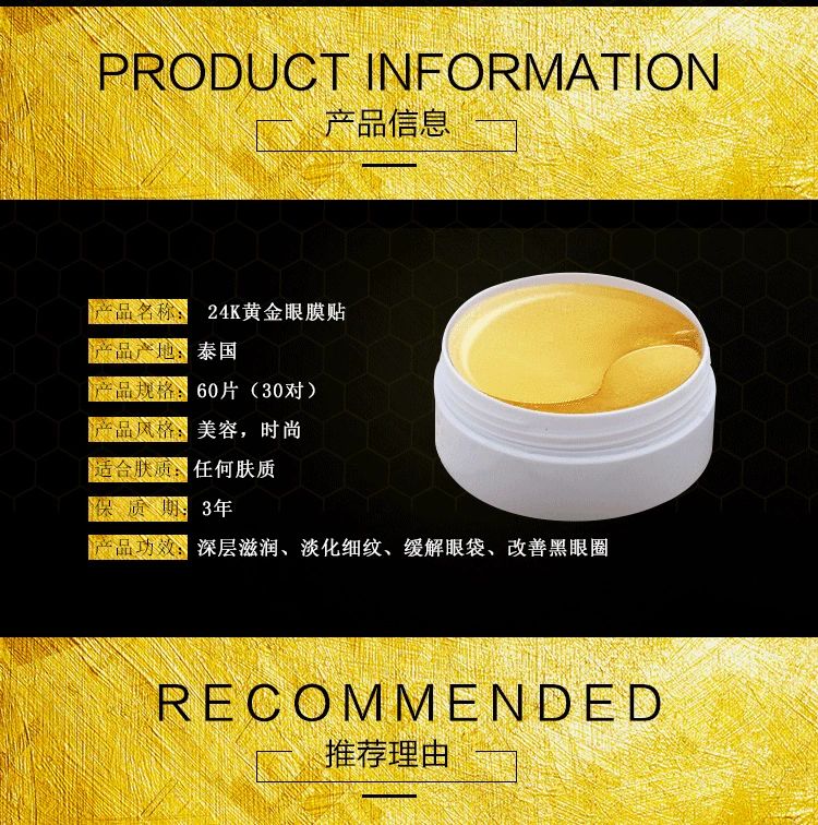泰国ATREUS 24k黄金眼膜贴60片深层滋润淡化细纹缓解眼袋改善黑眼圈