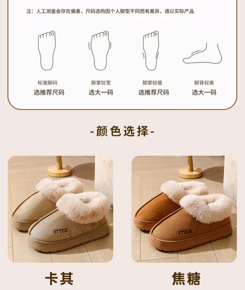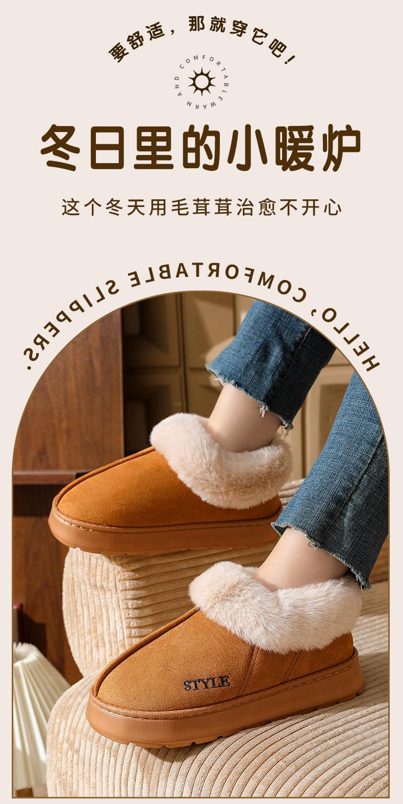 新款麂皮绒棉拖鞋男居家毛口保暖包跟月子鞋EVA防滑雪地靴女