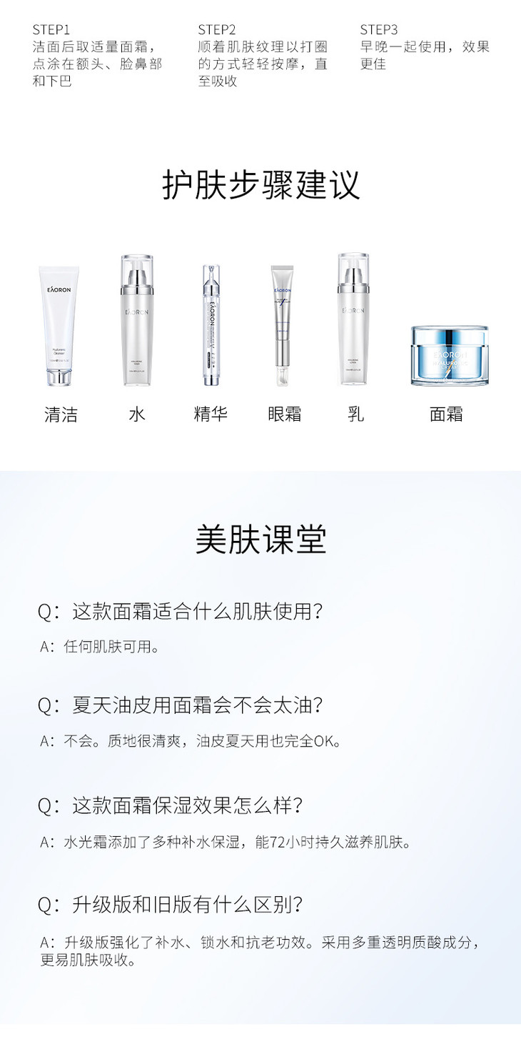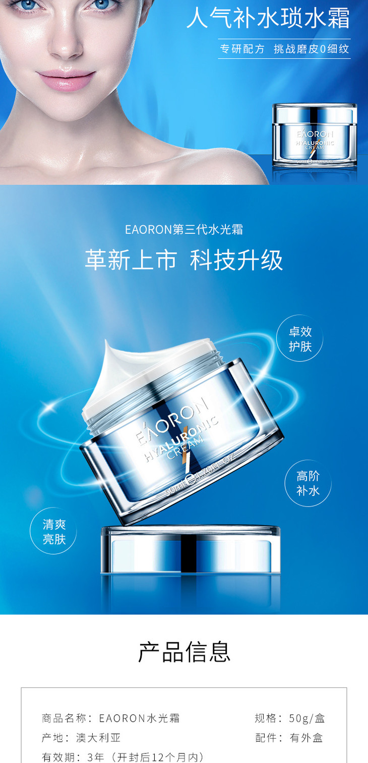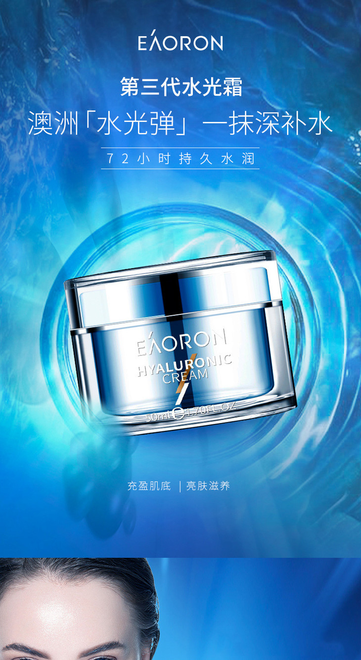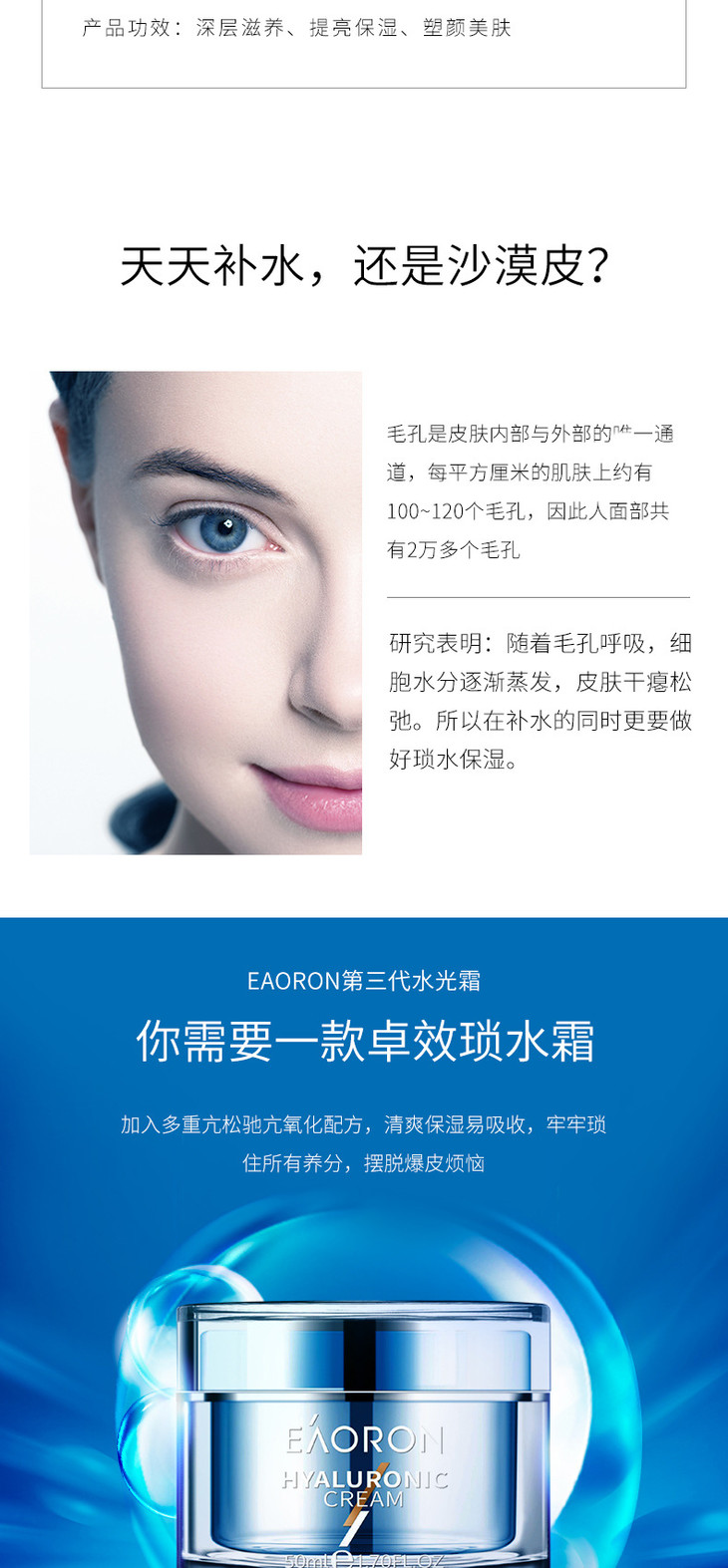 eaoron澳洲补水玻尿酸熬夜面霜水光霜50ml/盒 深层补水锁水滋润清爽不粘腻【澳洲原装进口 现货即发!】