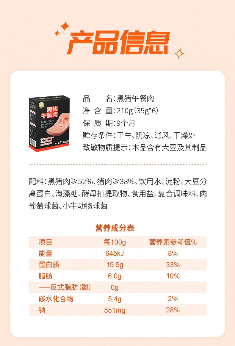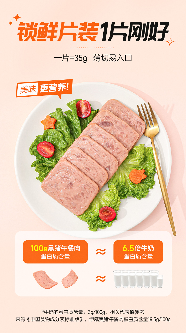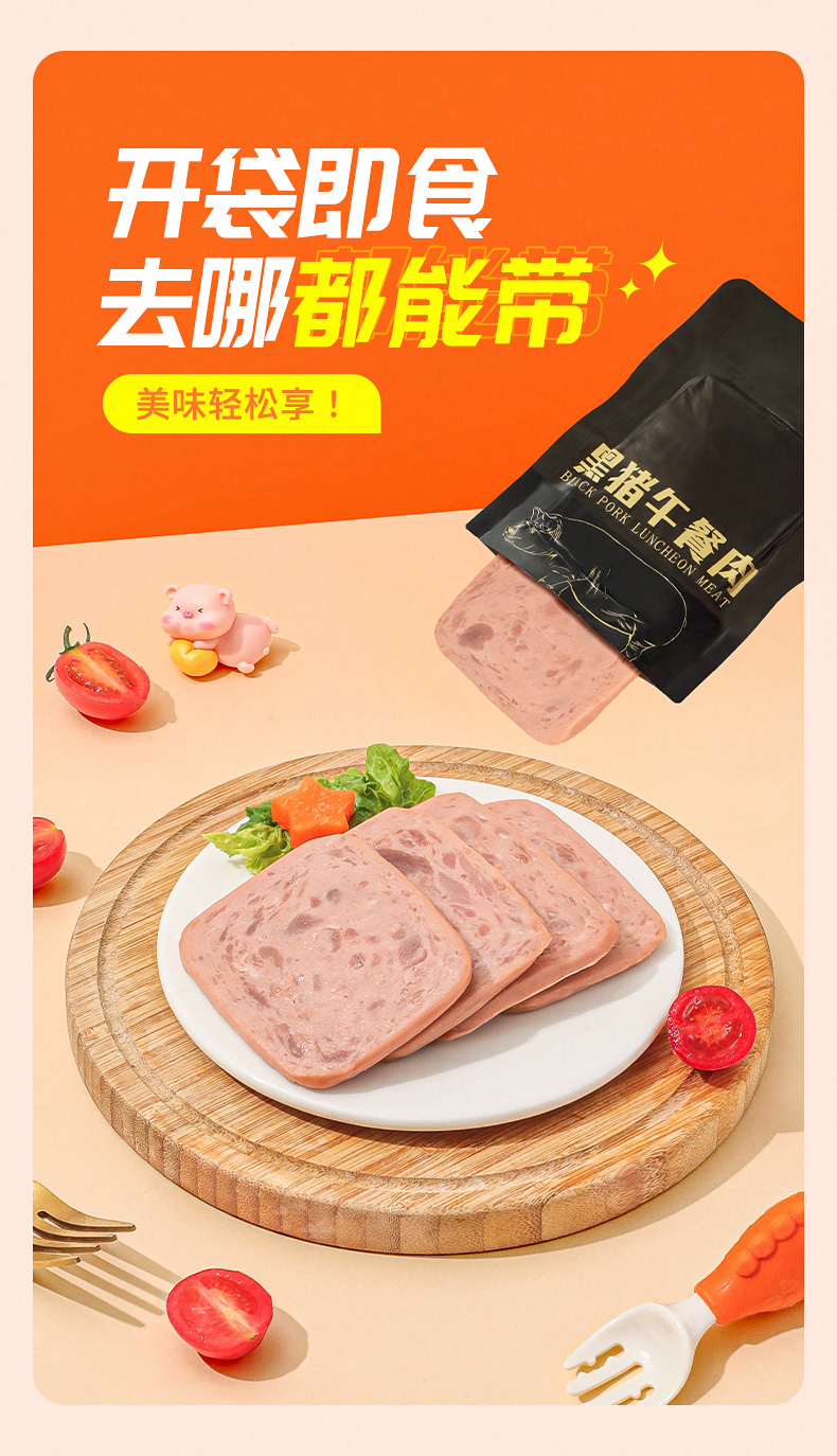 优选丨【伊威—黑猪午餐肉】早餐独立片装开袋即食210g减脂代餐零食