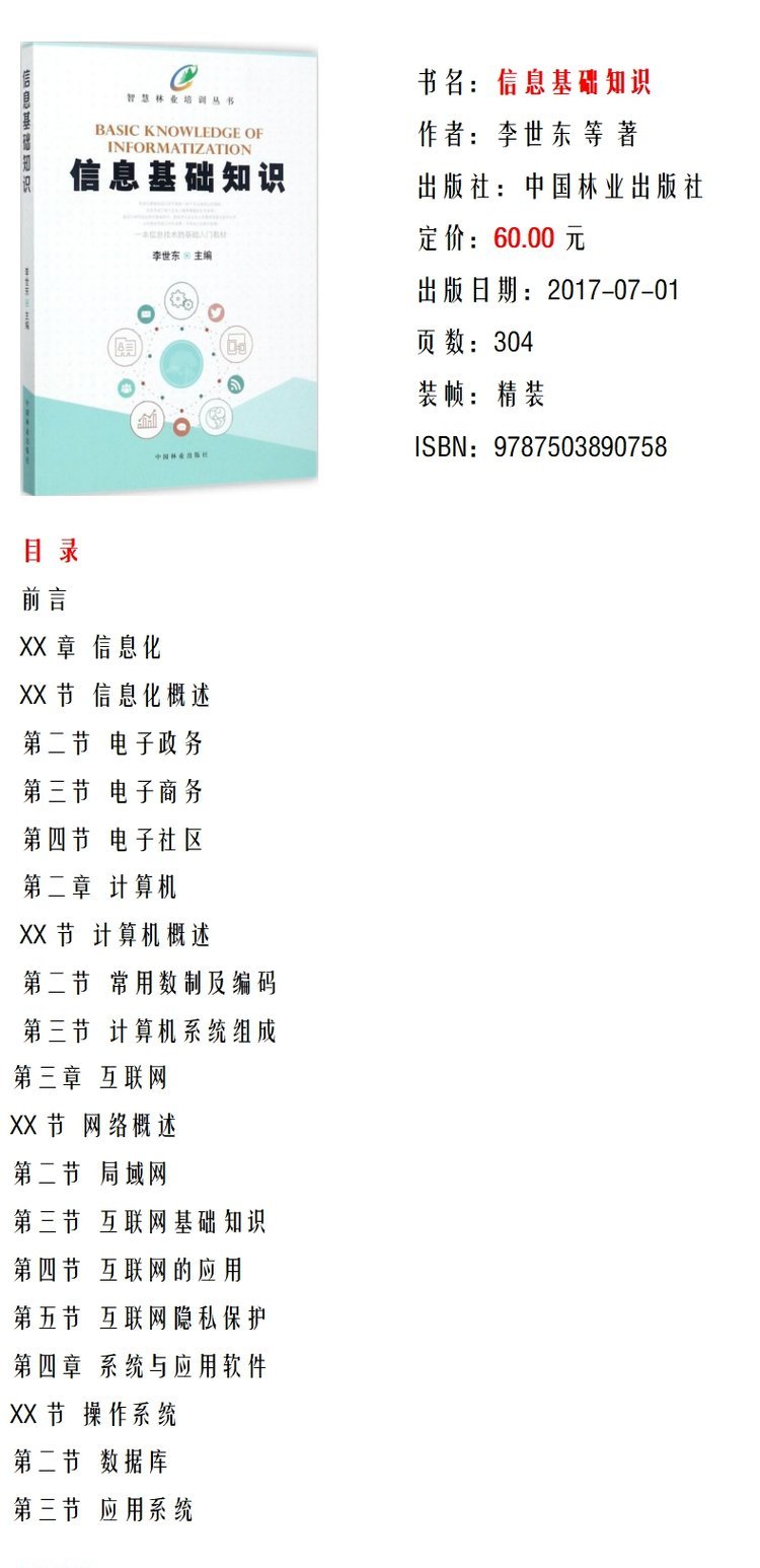 智慧林业培训丛书 信息基础知识 李世东 9075 中国林业出版社 畅销书籍