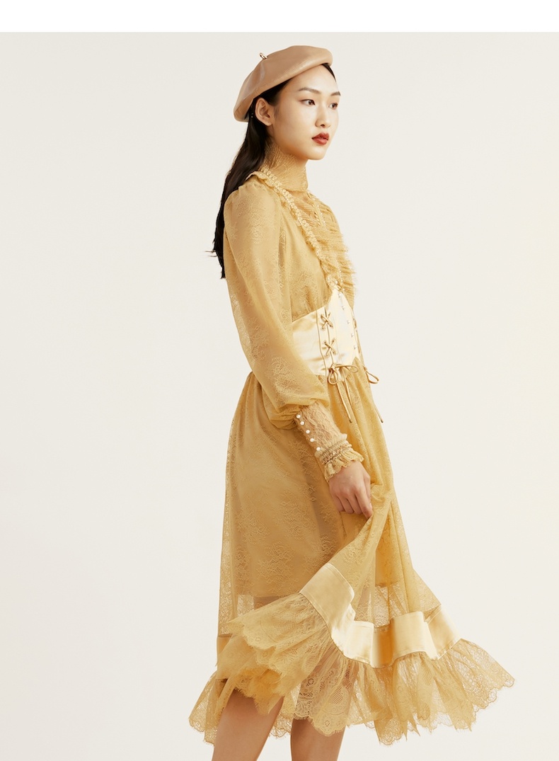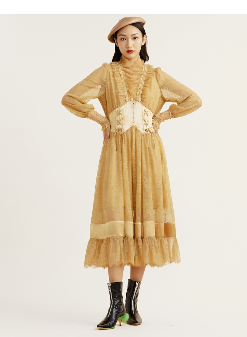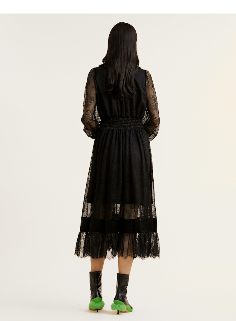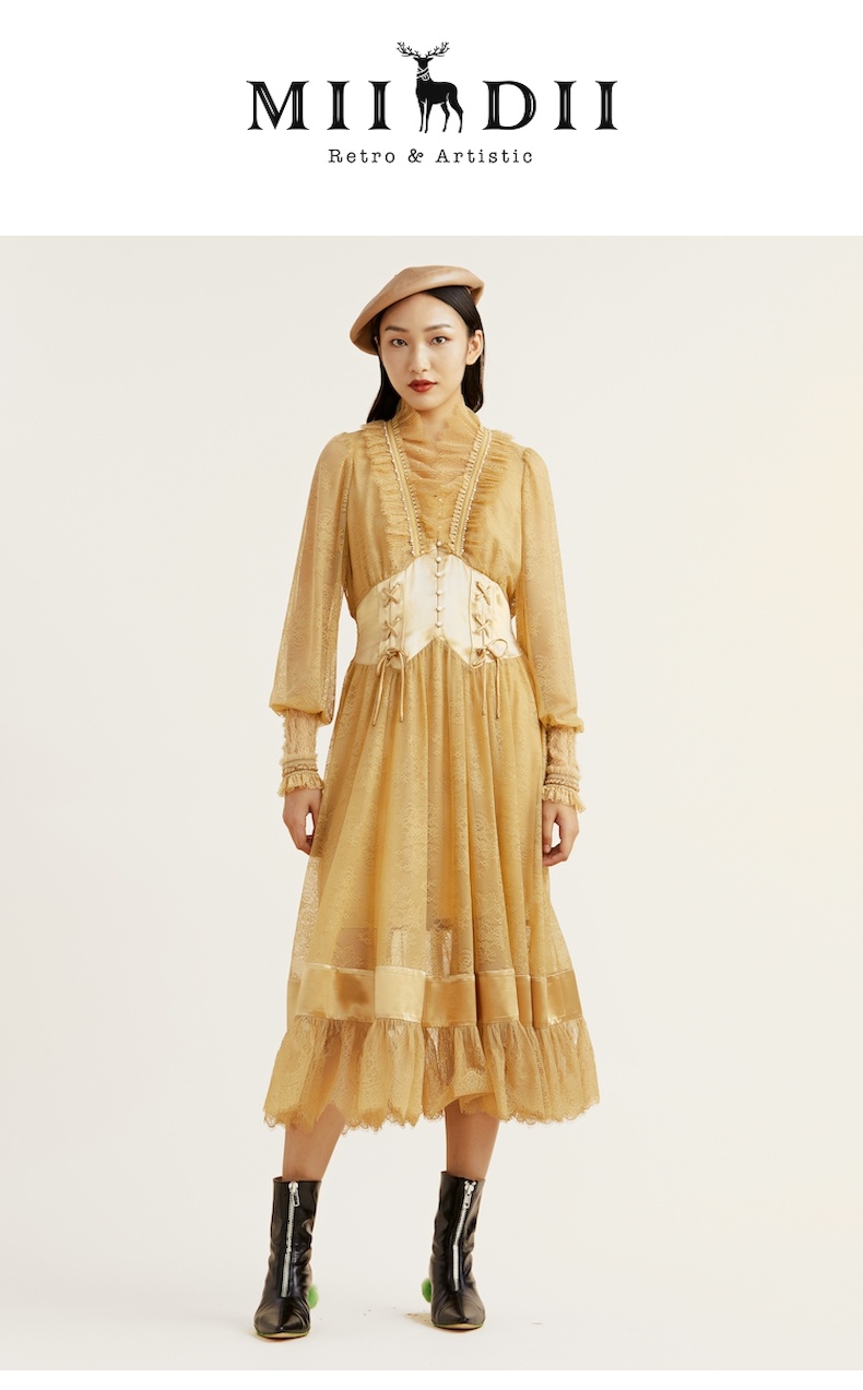 谜底2021冬新款高端系列法式浪漫收腰晚礼裙蕾丝连衣裙214GL2571
