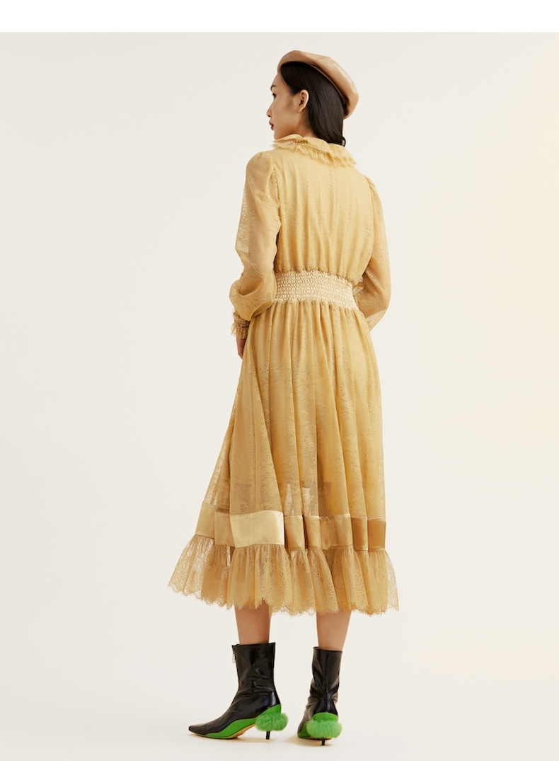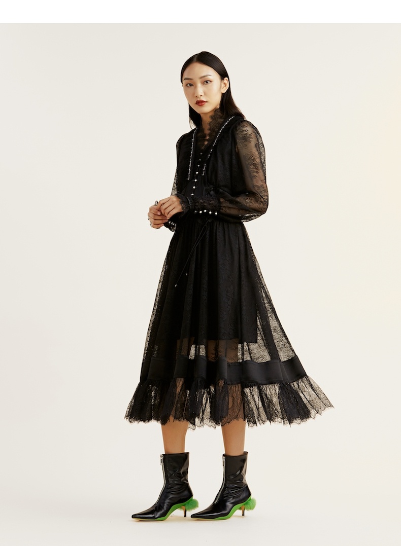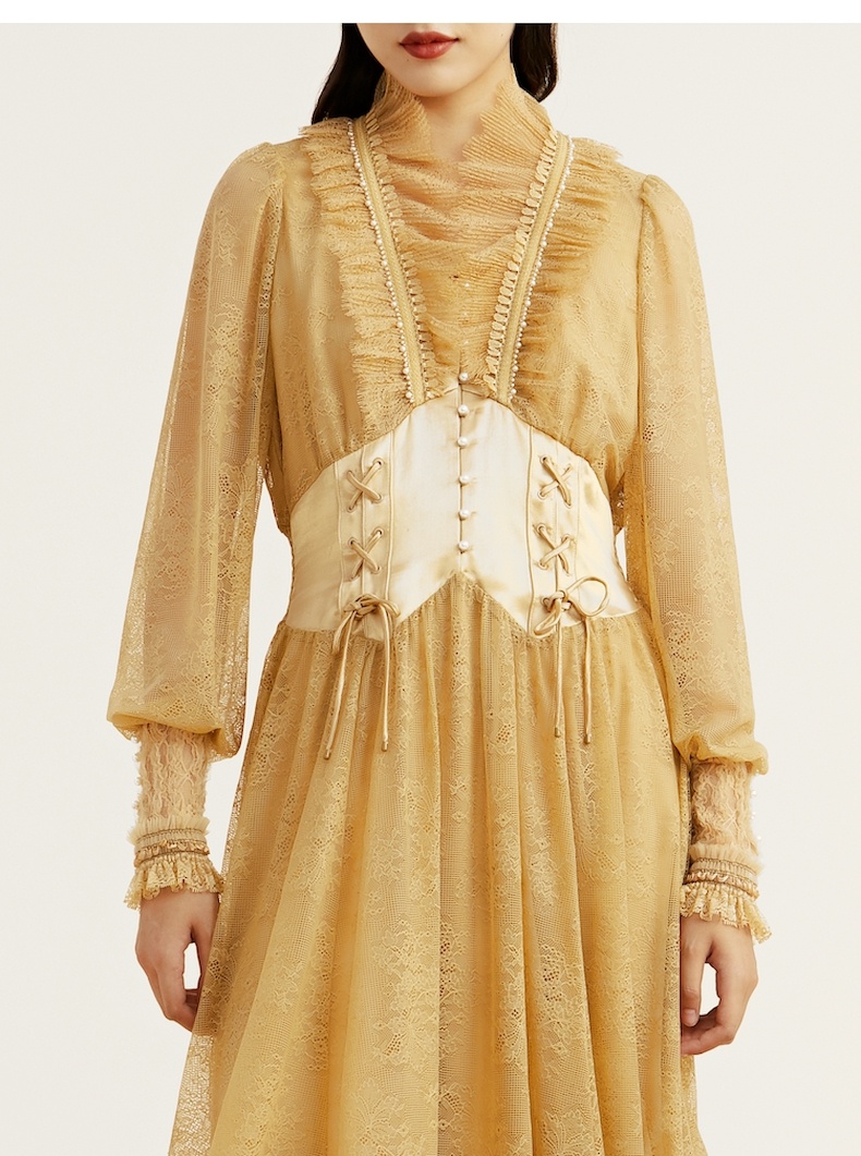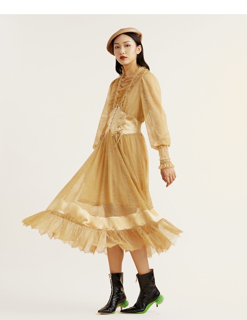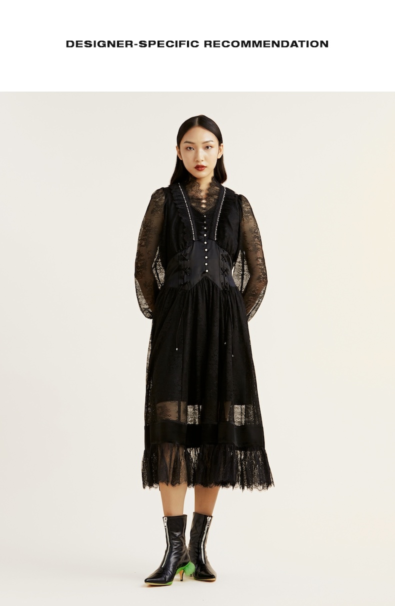 谜底2021冬新款高端系列法式浪漫收腰晚礼裙蕾丝连衣裙214GL2571