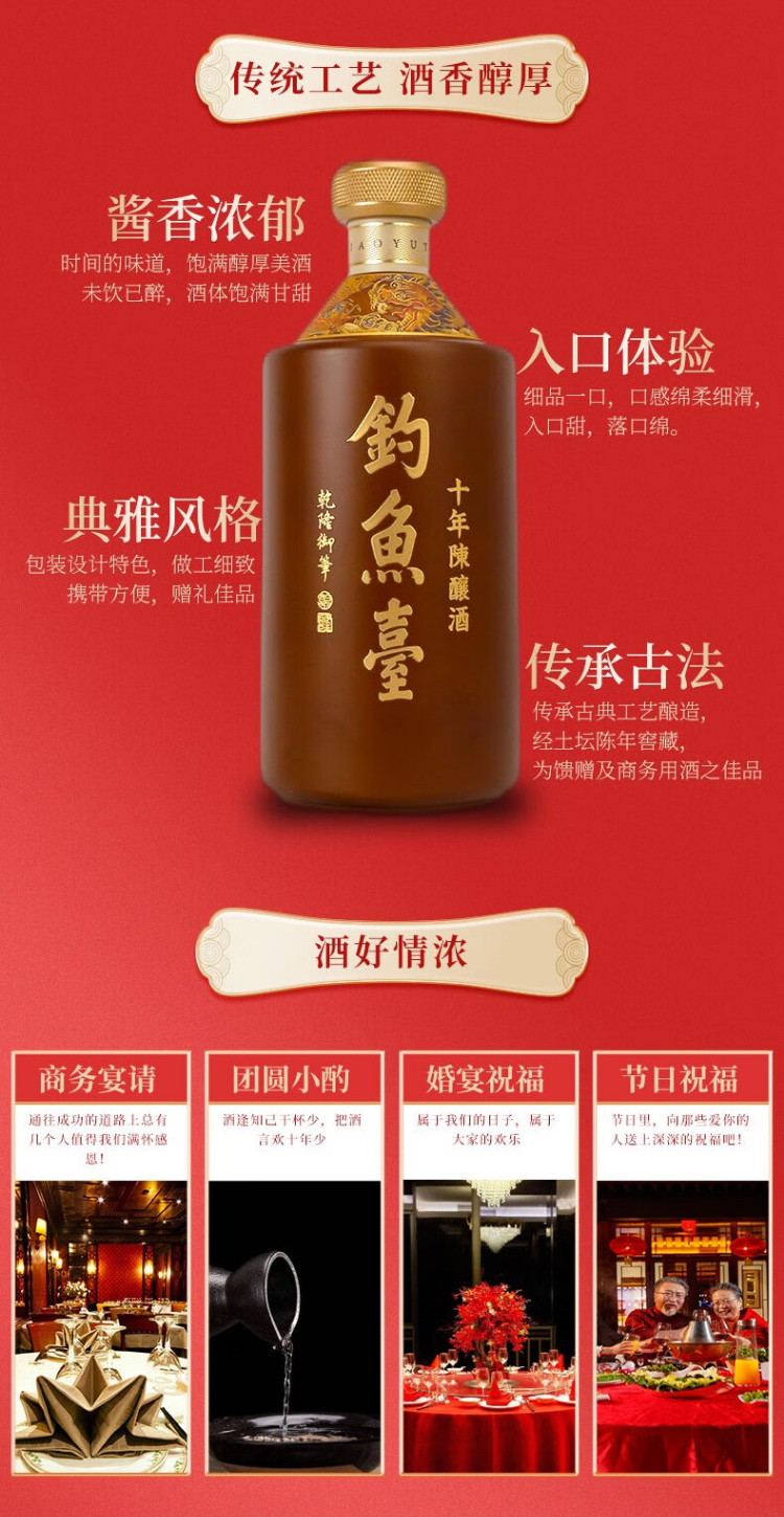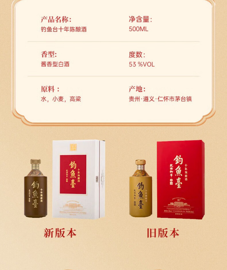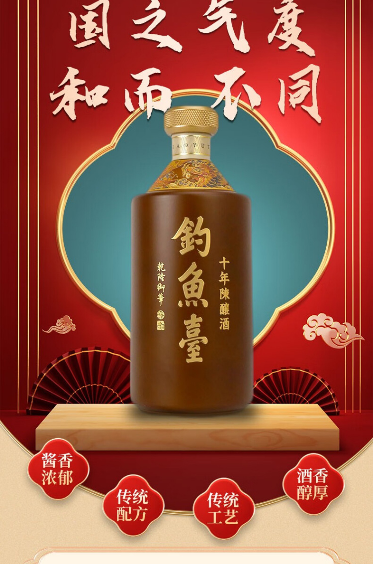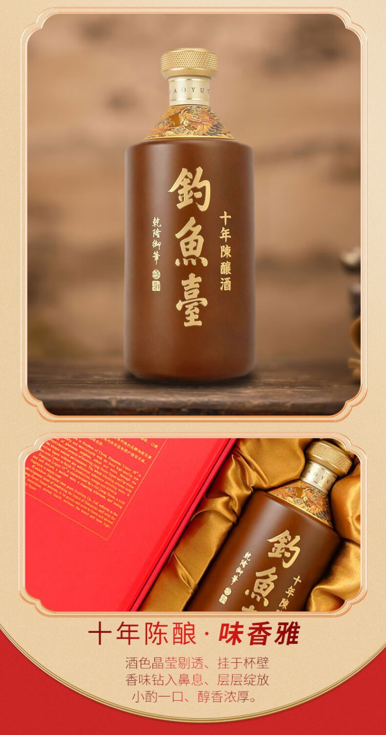 预售 钓鱼台 十年陈酿酒 10年陈酿 53度 酱香型 500ml