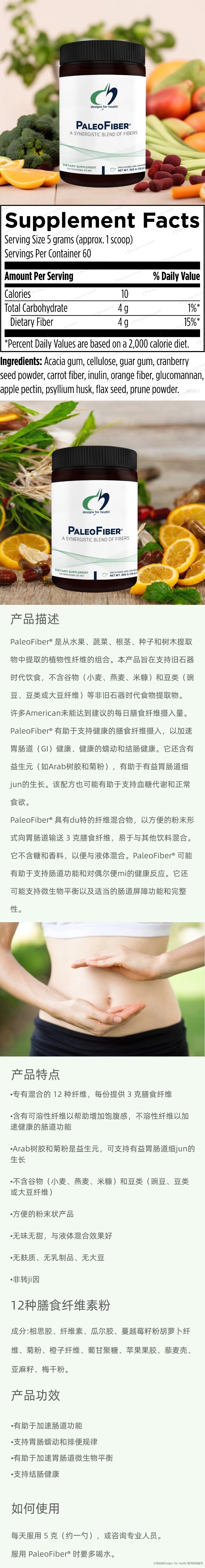 保税仓发货 PaleoFiber® 全蔬果膳食纤维粉 300克