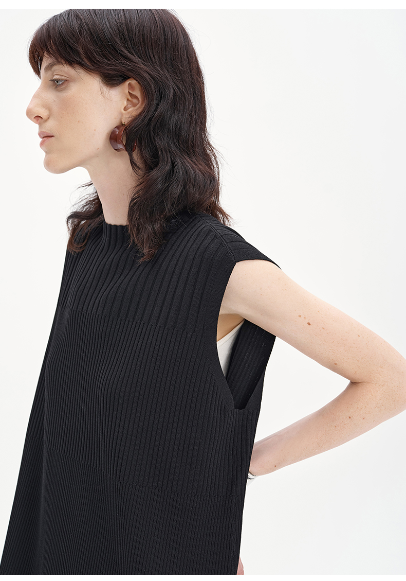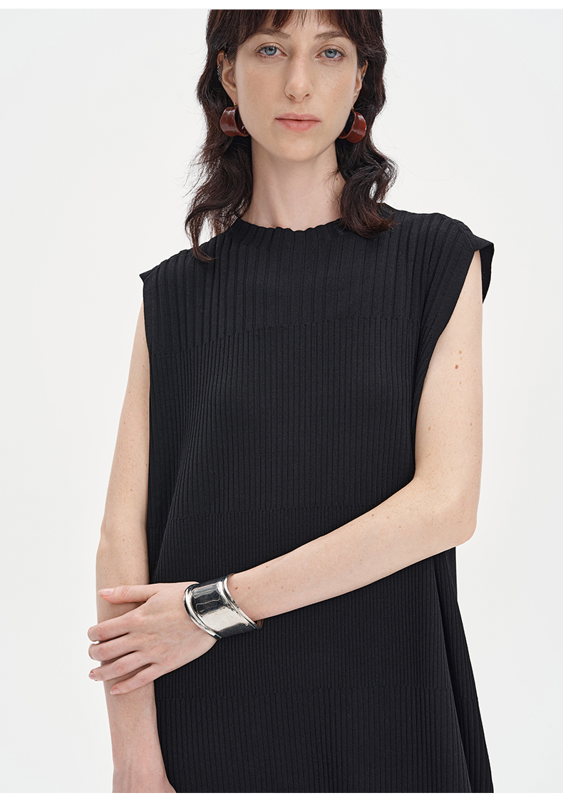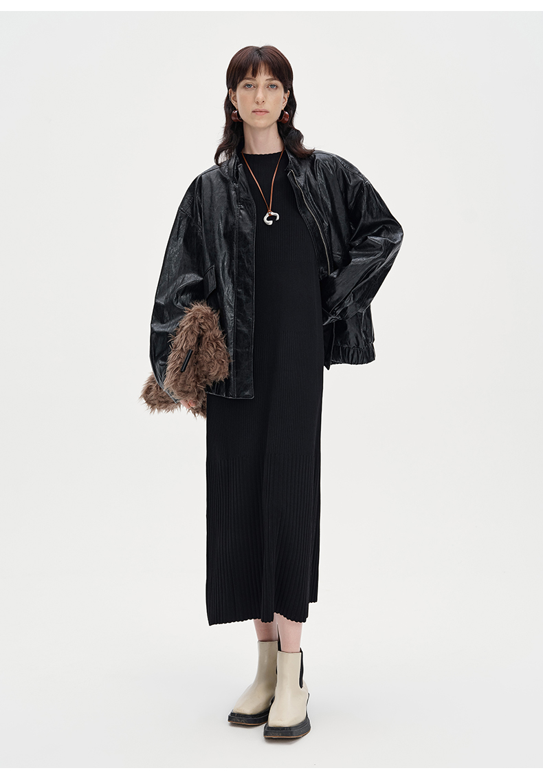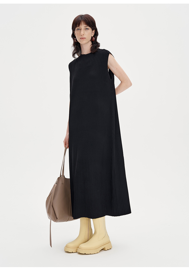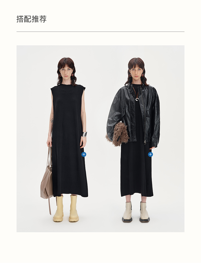 SELFWHO黑色针织连衣裙女2024秋季新款设计感小个子高级气质长裙