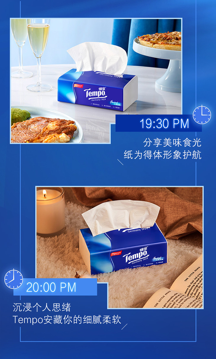 Tempo得宝软抽纸巾经典无香4层加厚90抽18包箱装 家用抽纸餐巾纸实惠装