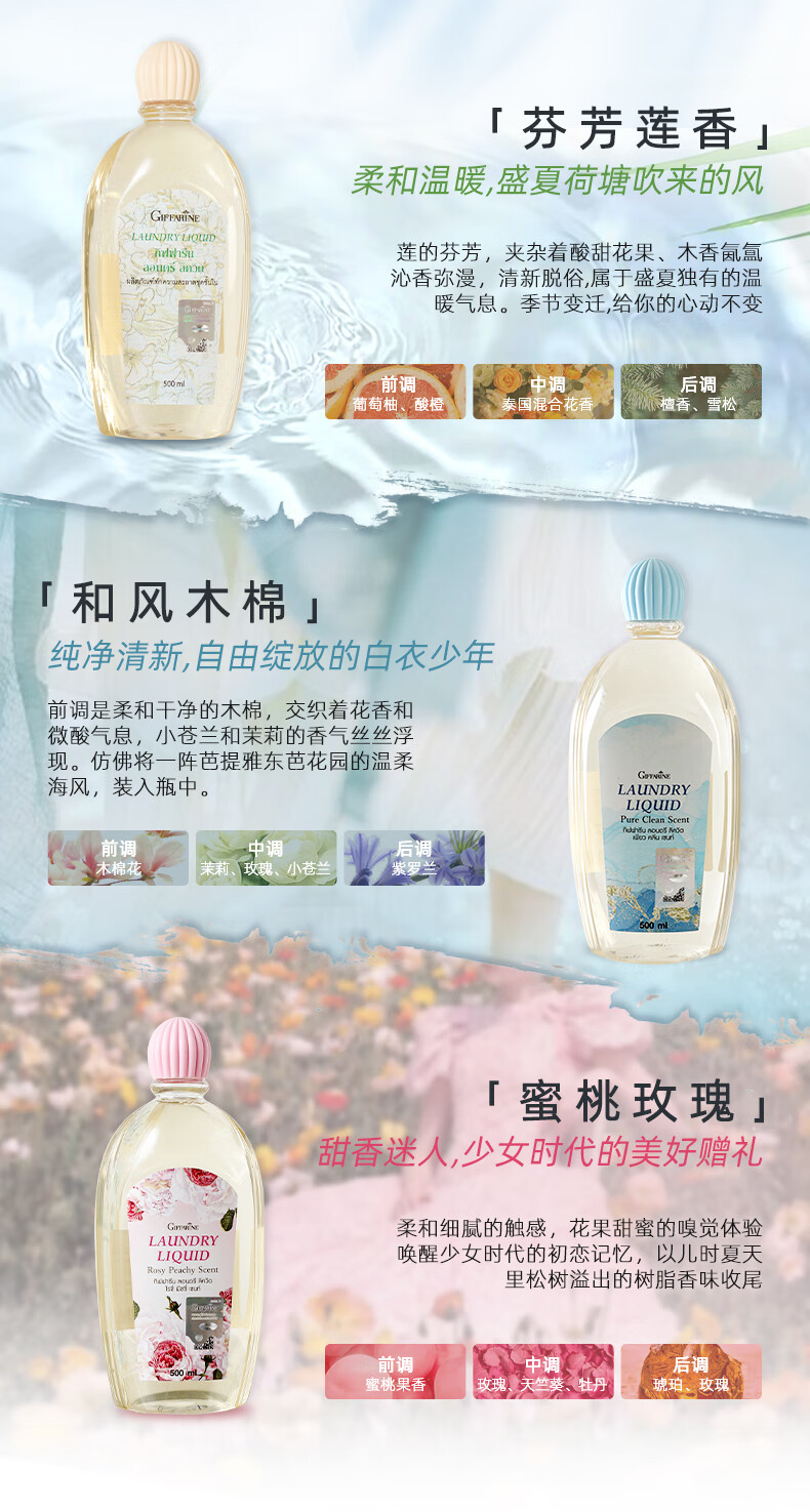 【2瓶装】芝芙莲 泰国进口去污去血渍内衣内裤儿童衣物专用留香多效合一洗衣液 500ml/瓶