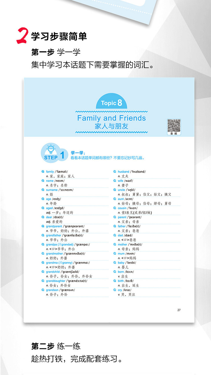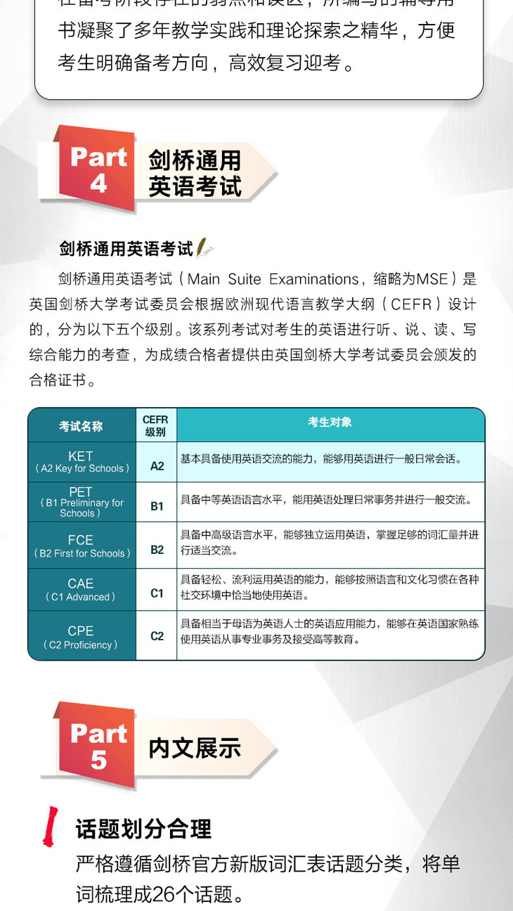 1.以剑桥KET新版考试官方词表的话题分类为基础,将全书词汇梳理成26个话题,考生可以一天学习一个话题,科学合理。