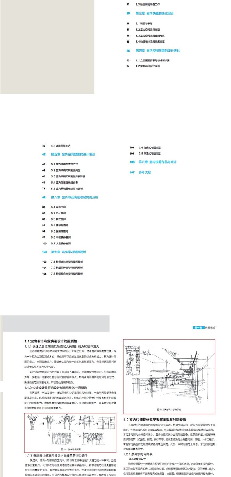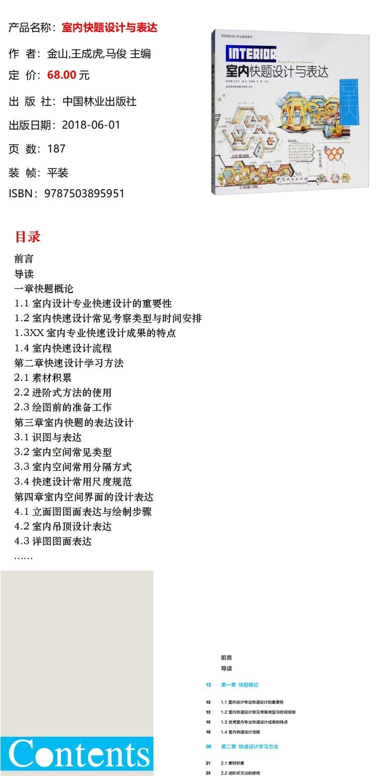 室内快题设计与表达 9595 室内基础尺度 家居陈设 空间类型 环境营造 高等院校设计专业教材 室内装修设计 手绘 中国林业出版社