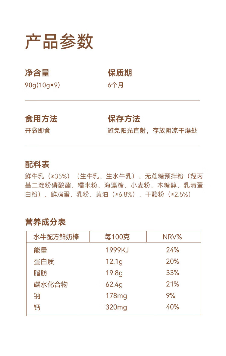 隔壁刘奶奶 水牛配方鲜奶棒10g*9袋/盒