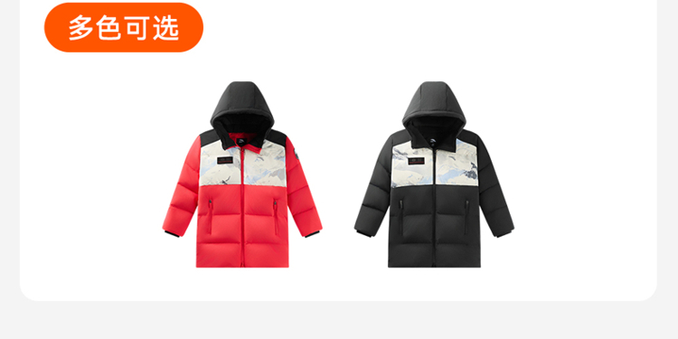 安踏儿童男小童中长羽绒服2026年新款保暖抗寒儿童四防热返羽绒服352619905