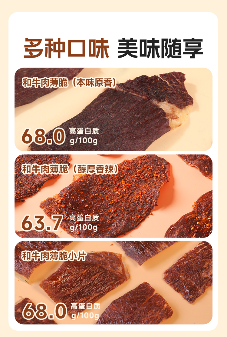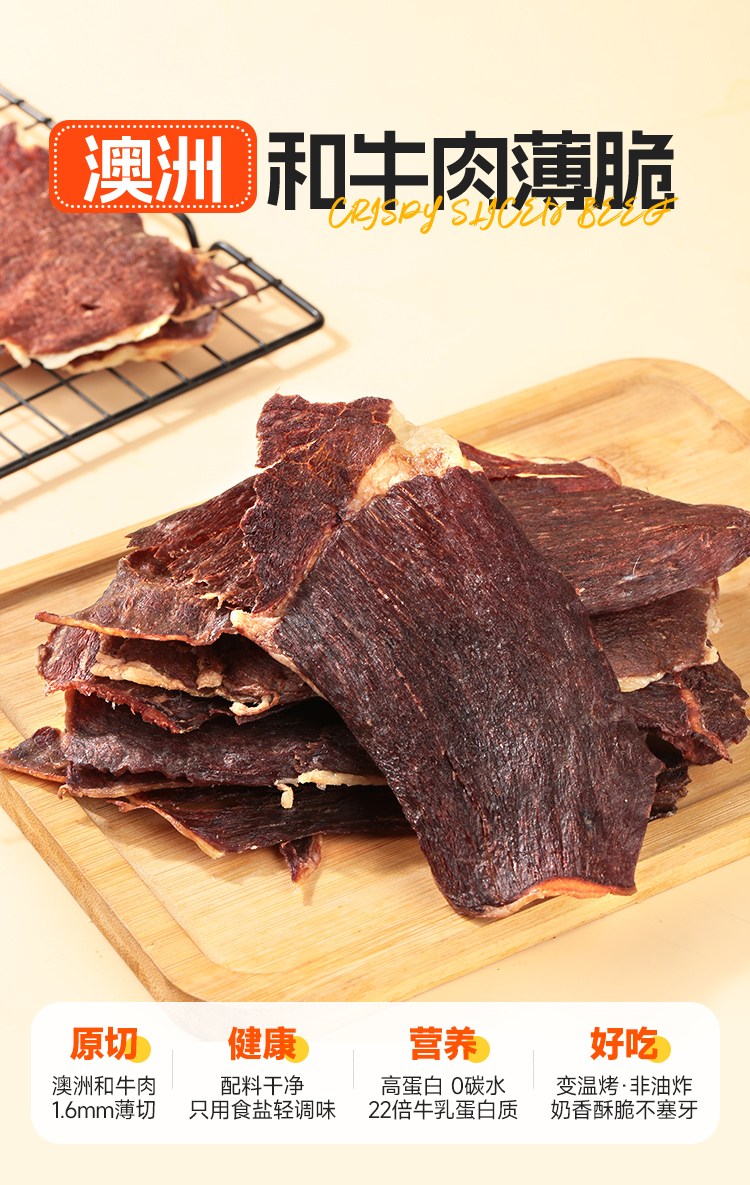 【FX】西域美农和牛肉薄脆原味/香辣100g,和牛小脆80g 鲜香薄脆