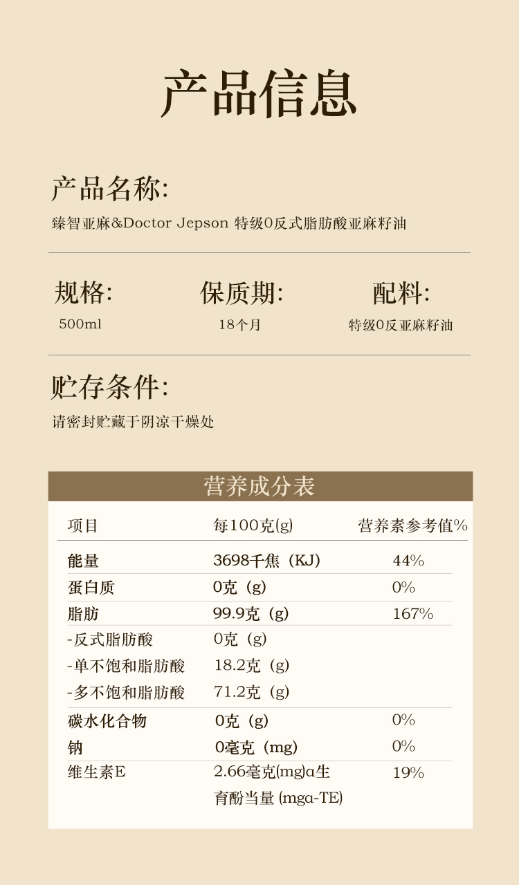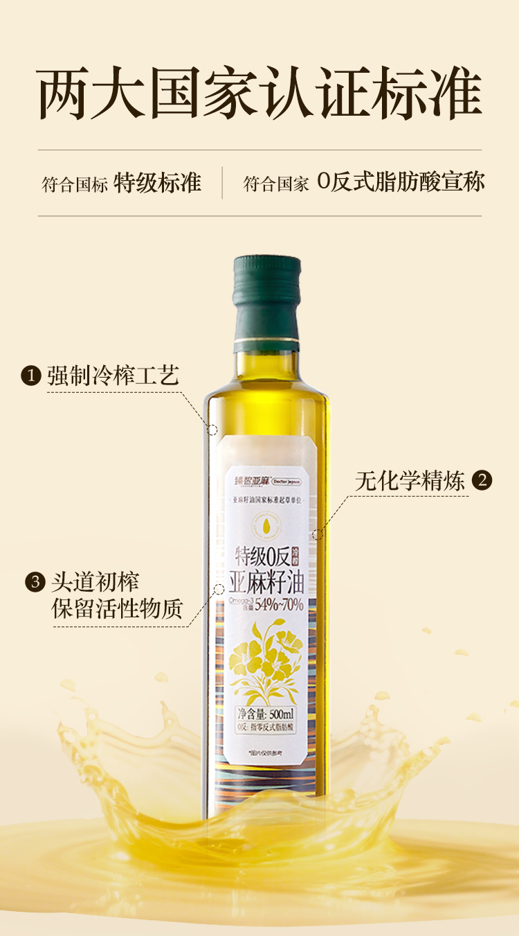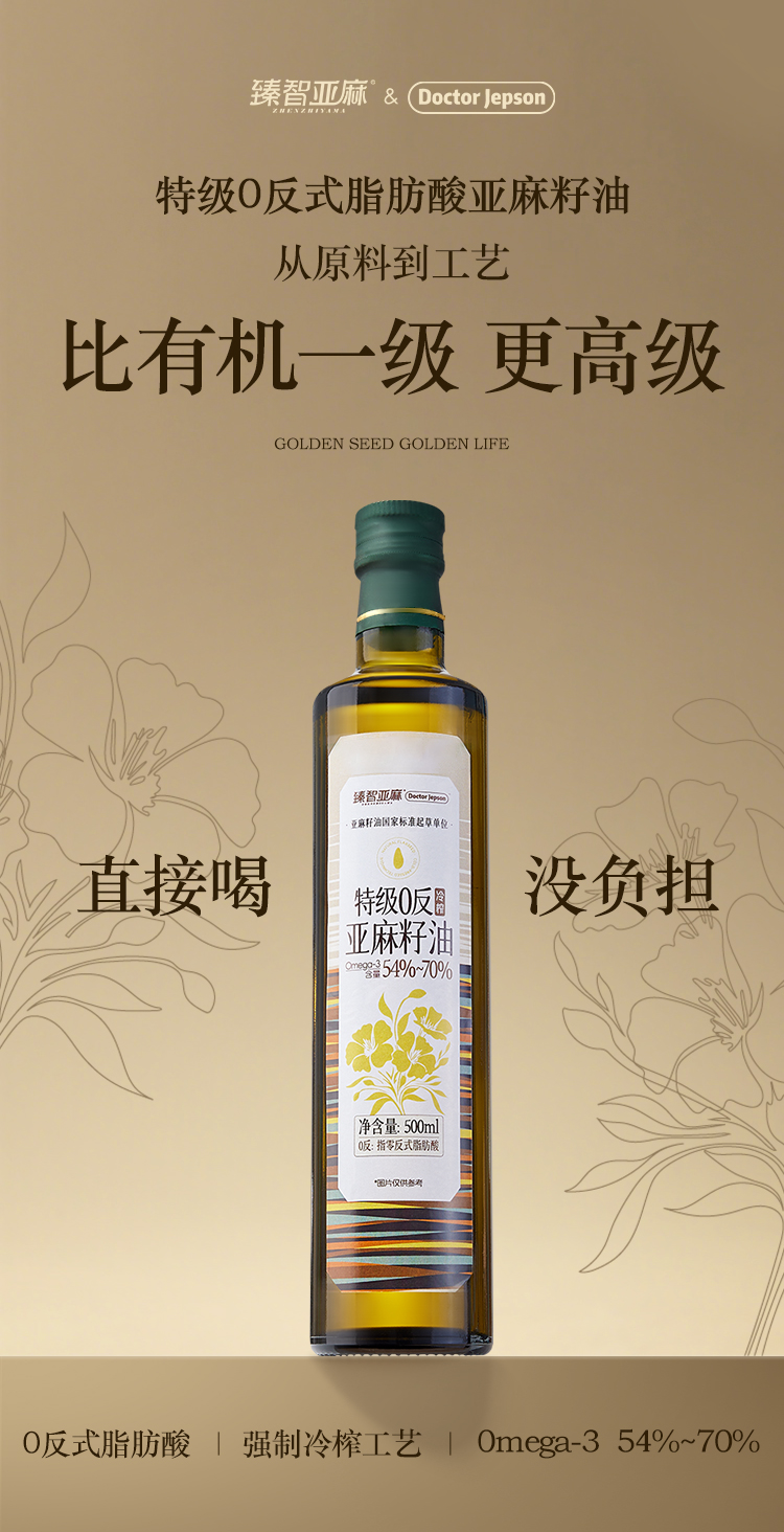 Doctor Jepson 特级0反亚麻籽油 冷榨工艺 500ml/瓶