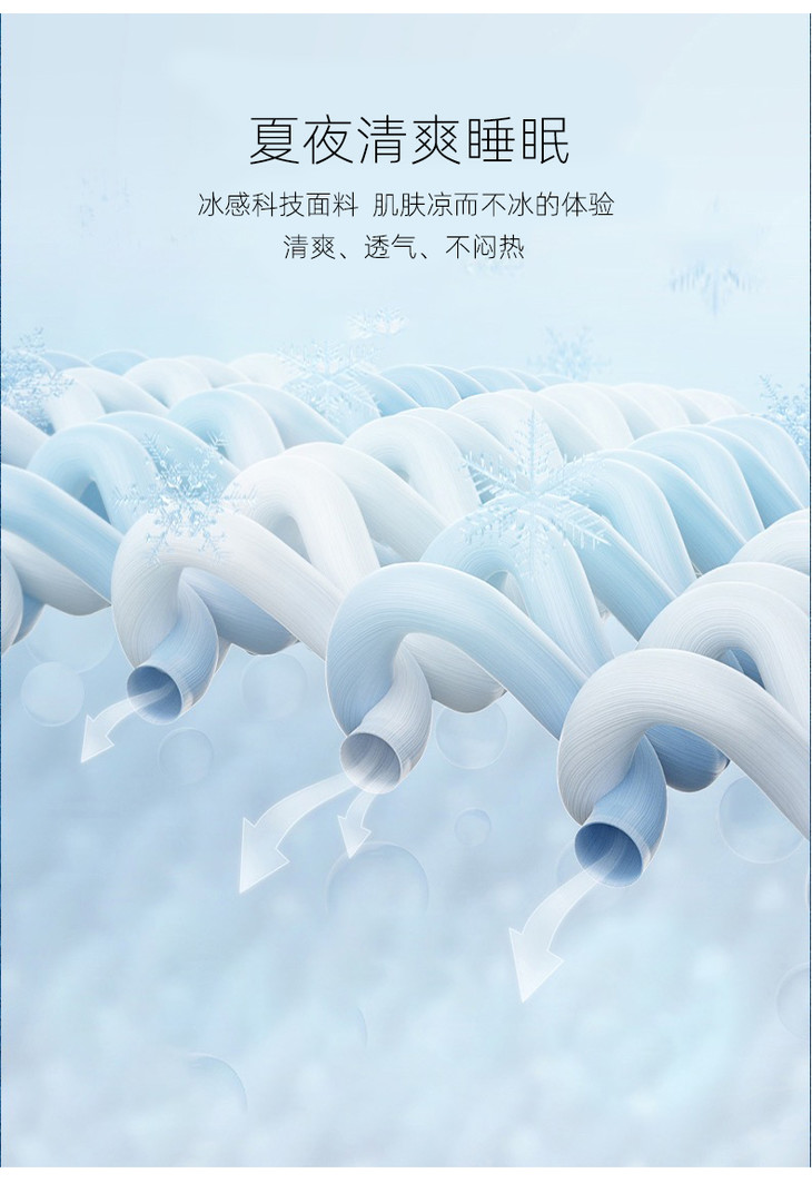 聚酰胺凉感纤维面料,细腻柔顺,让凉感更持久👍一整张超细纤维填充绗缝,可机洗水洗✔