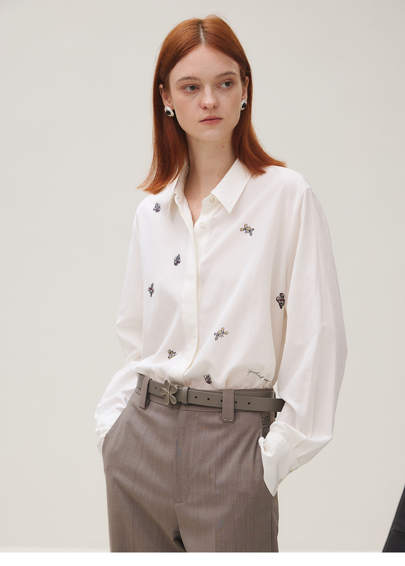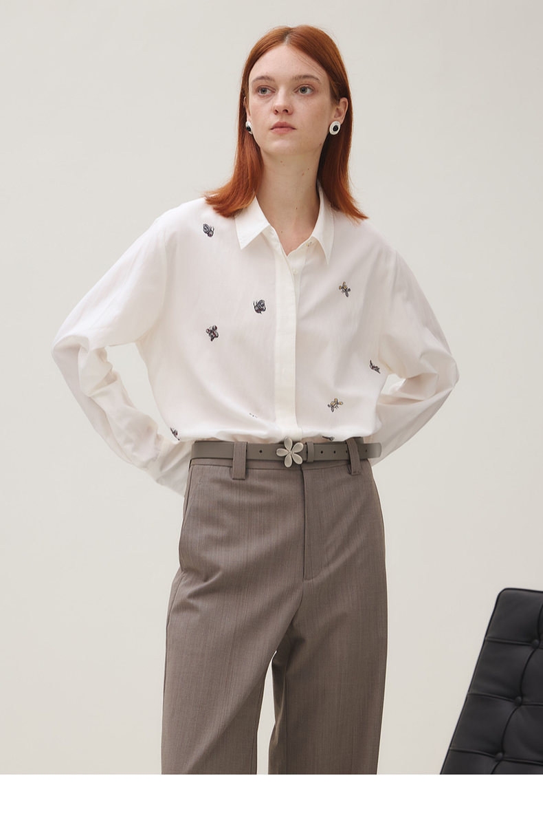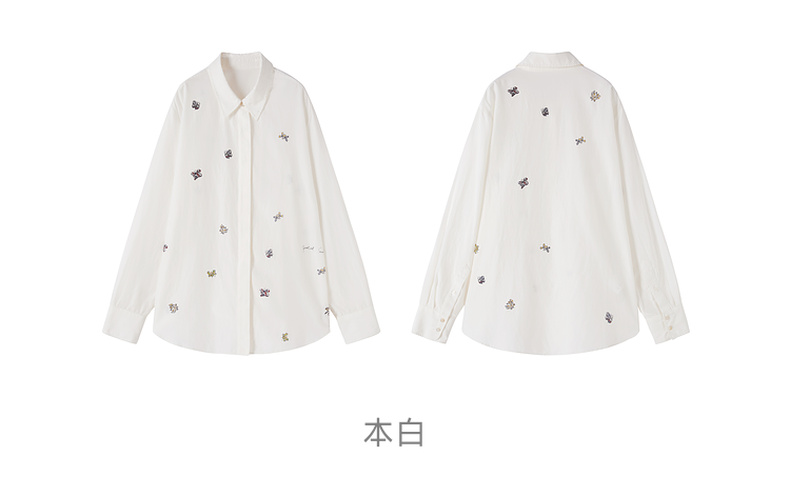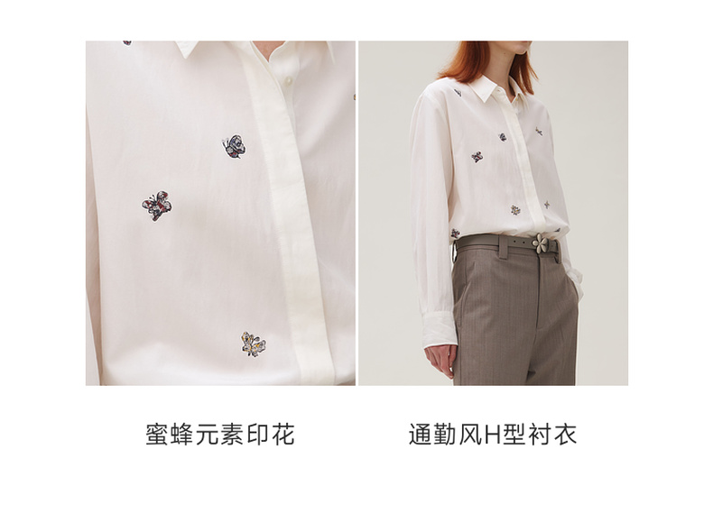 谜底衬衣长袖女2025秋季新品通勤垂顺蜜蜂绣花宽松衬衫253GC1171