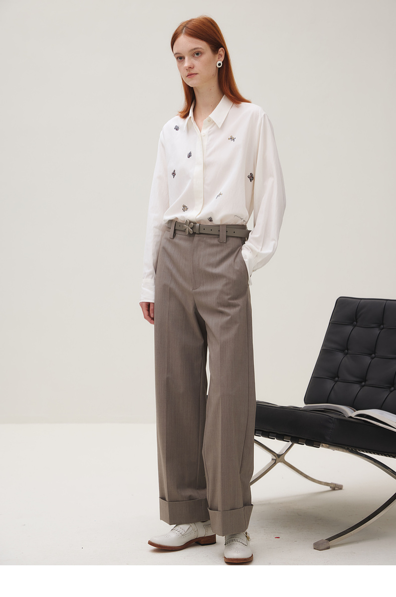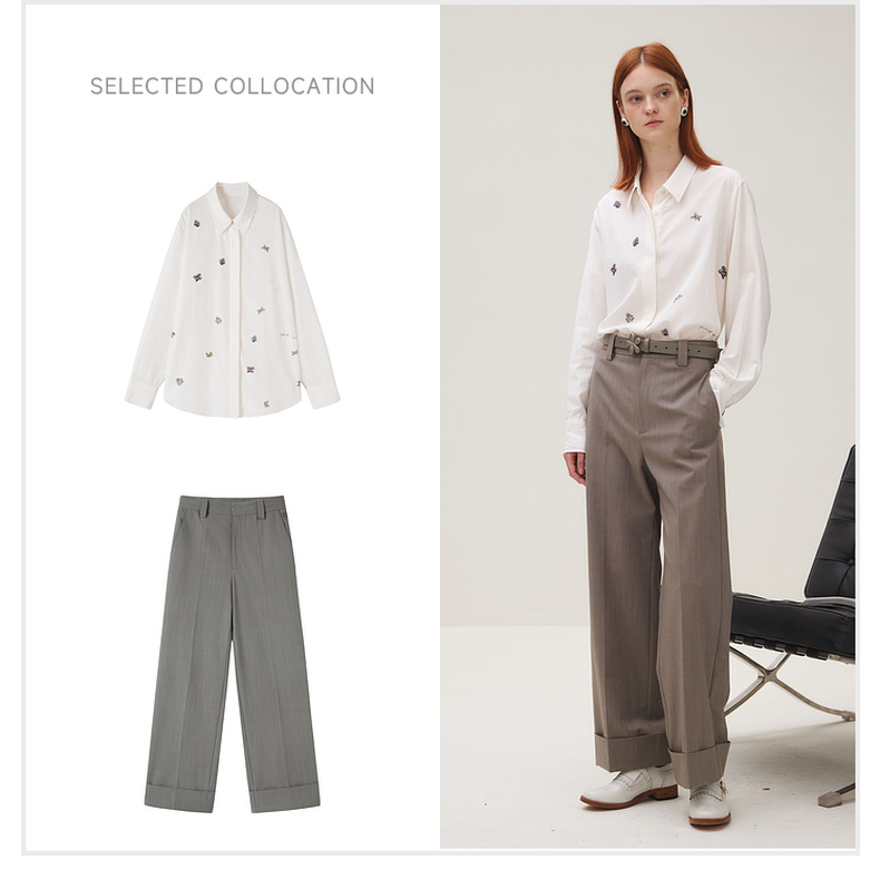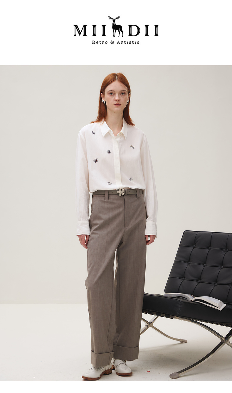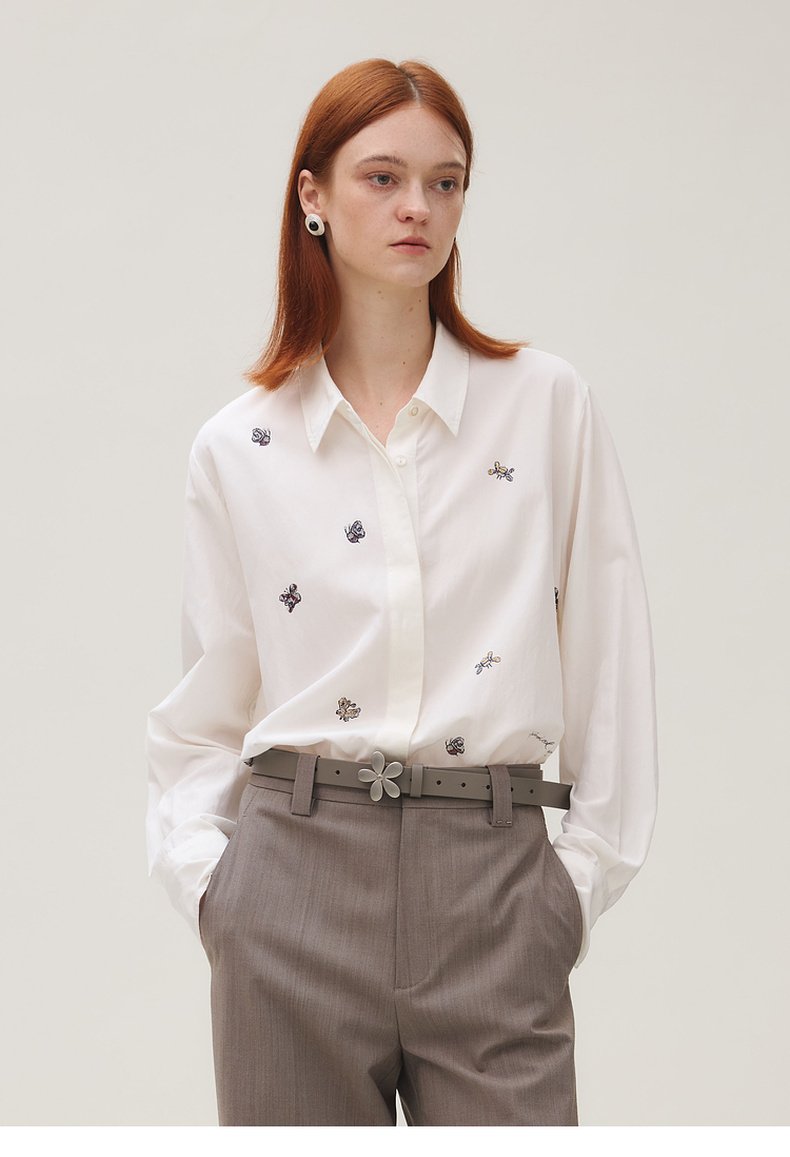 谜底衬衣长袖女2025秋季新品通勤垂顺蜜蜂绣花宽松衬衫253GC1171