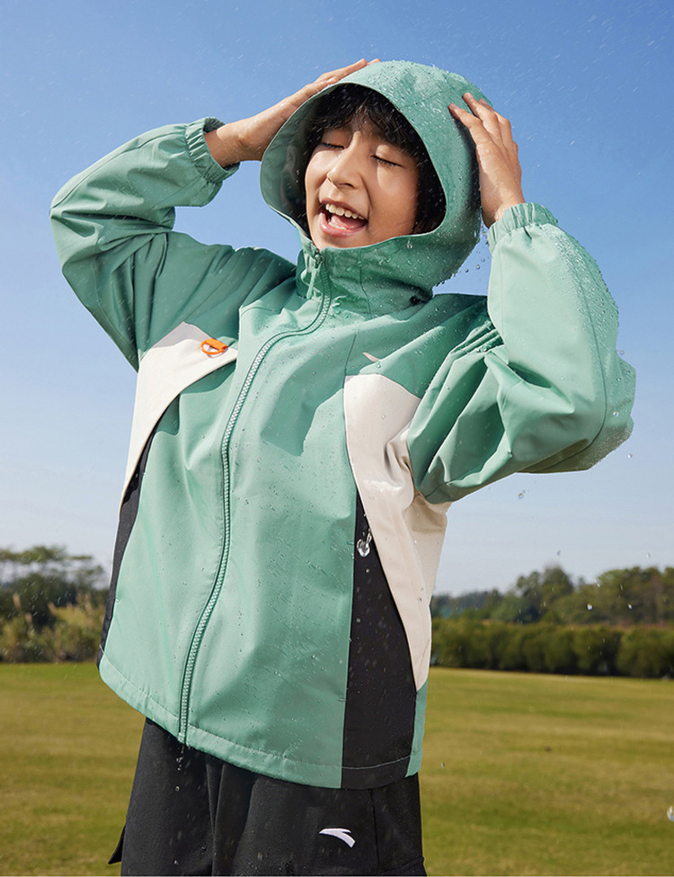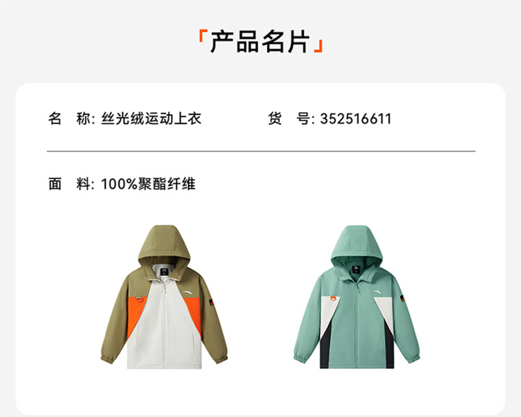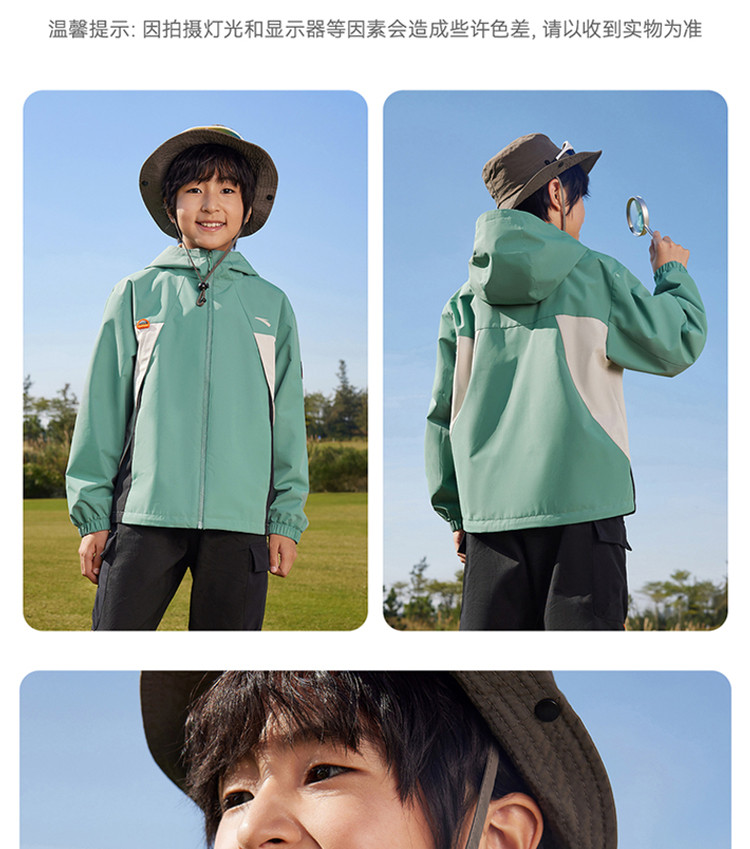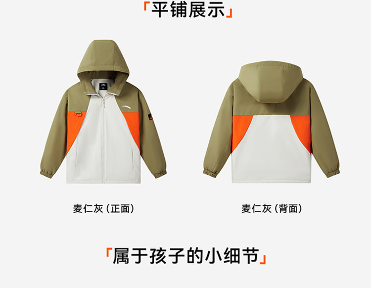 安踏儿童丝光绒上衣春新款男大童防风外套中大童风衣352516611