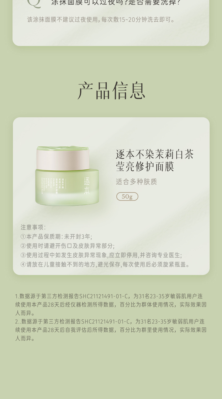 【分销供货】逐本不染茉莉白茶莹亮修护涂抹面膜50g*2