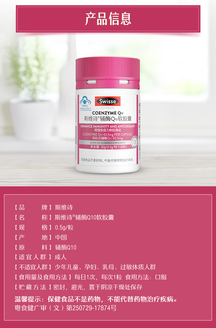 Swisse 斯维诗 天灿维生素E辅酶Q10软胶囊 60粒/瓶