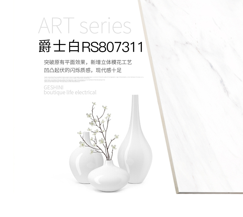 诺贝尔(NABEL) 瓷砖 防滑大理石瓷砖客厅地砖 现代简约耐磨地板砖 爵士白 釉面墙砖 300*600 整箱起售(8片/箱)