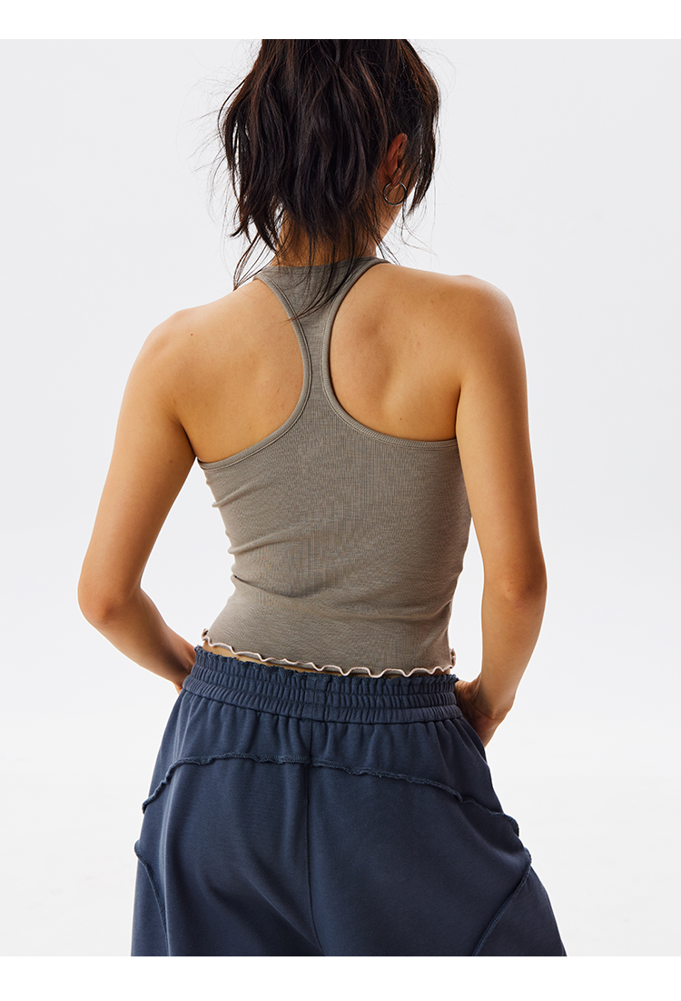 CryingCenter 美肩背卷边迷你logo弹力背心 哭喊中心