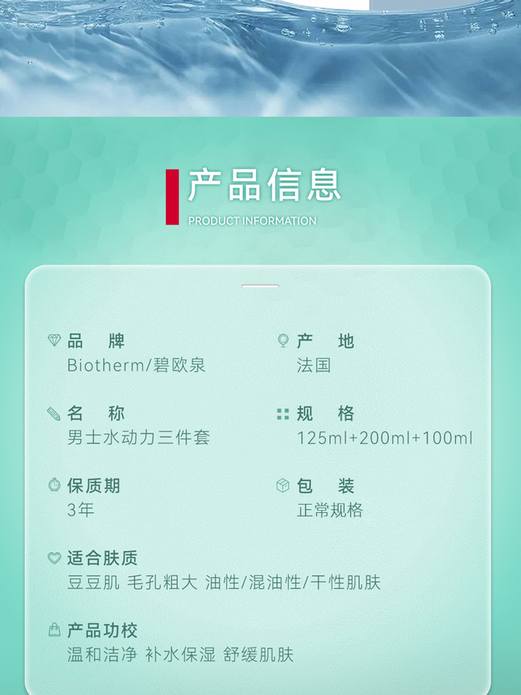 【礼想心动】BiothermHomme 碧欧泉 男士水动力补水保湿三件套