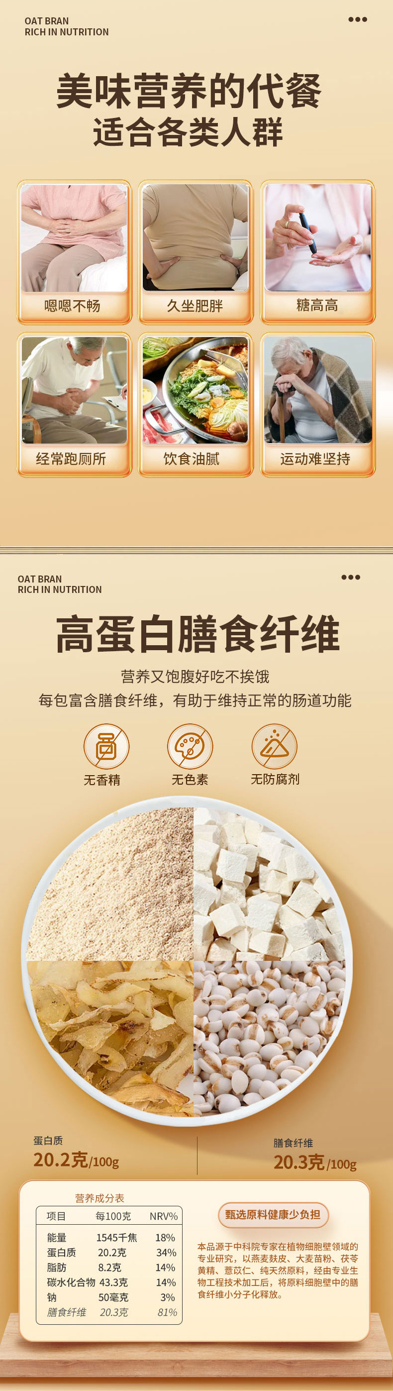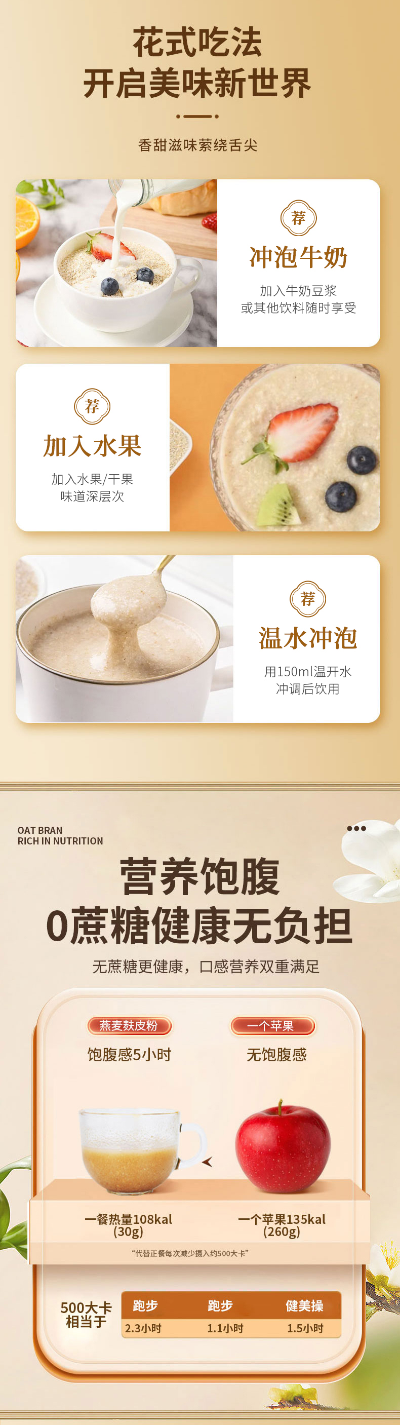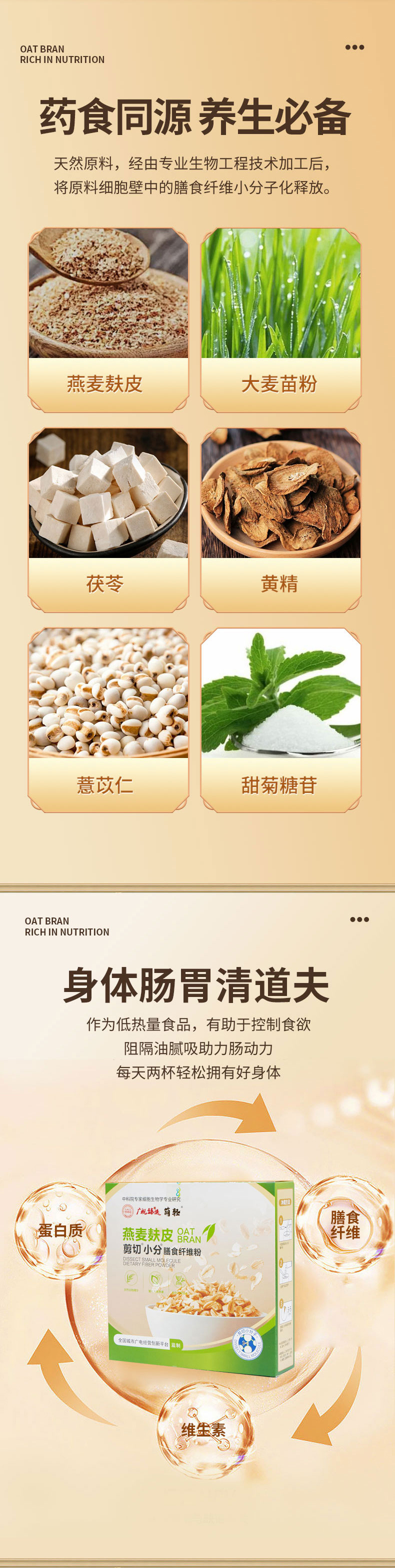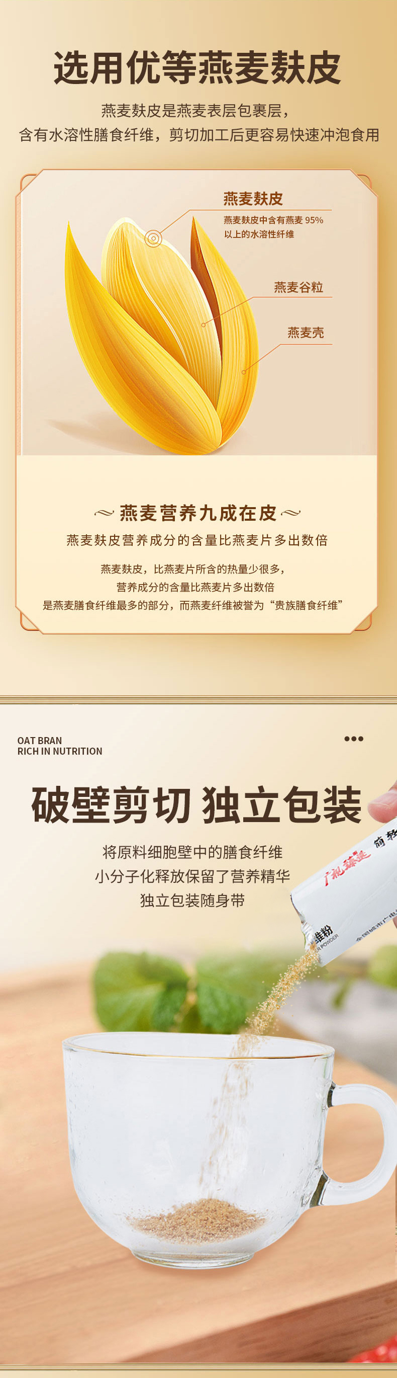 【燕麦麸皮 破壁剪切小分子膳食纤维粉】温水即溶易冲泡,早餐冲饮搭档,早晚一杯,轻松补充每日所需营养
