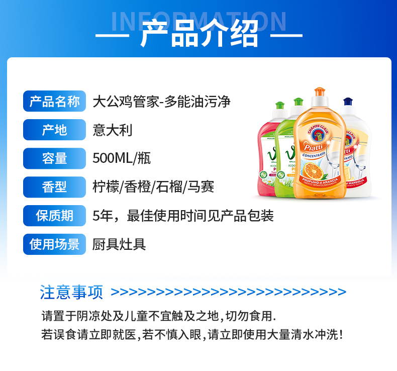 大公鸡管家 浓缩家用去油污洗洁精 500ml/瓶