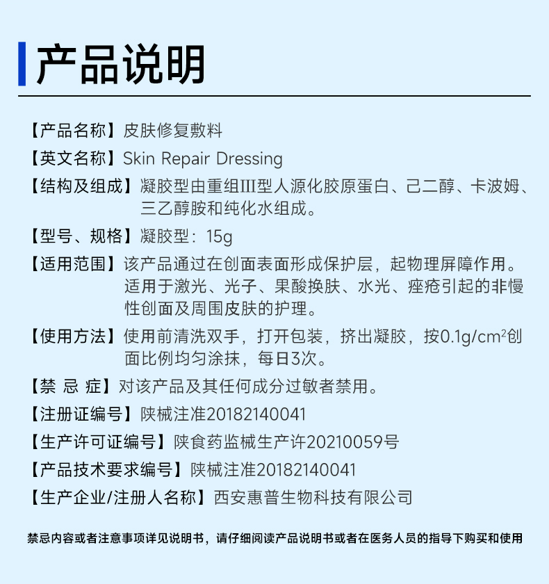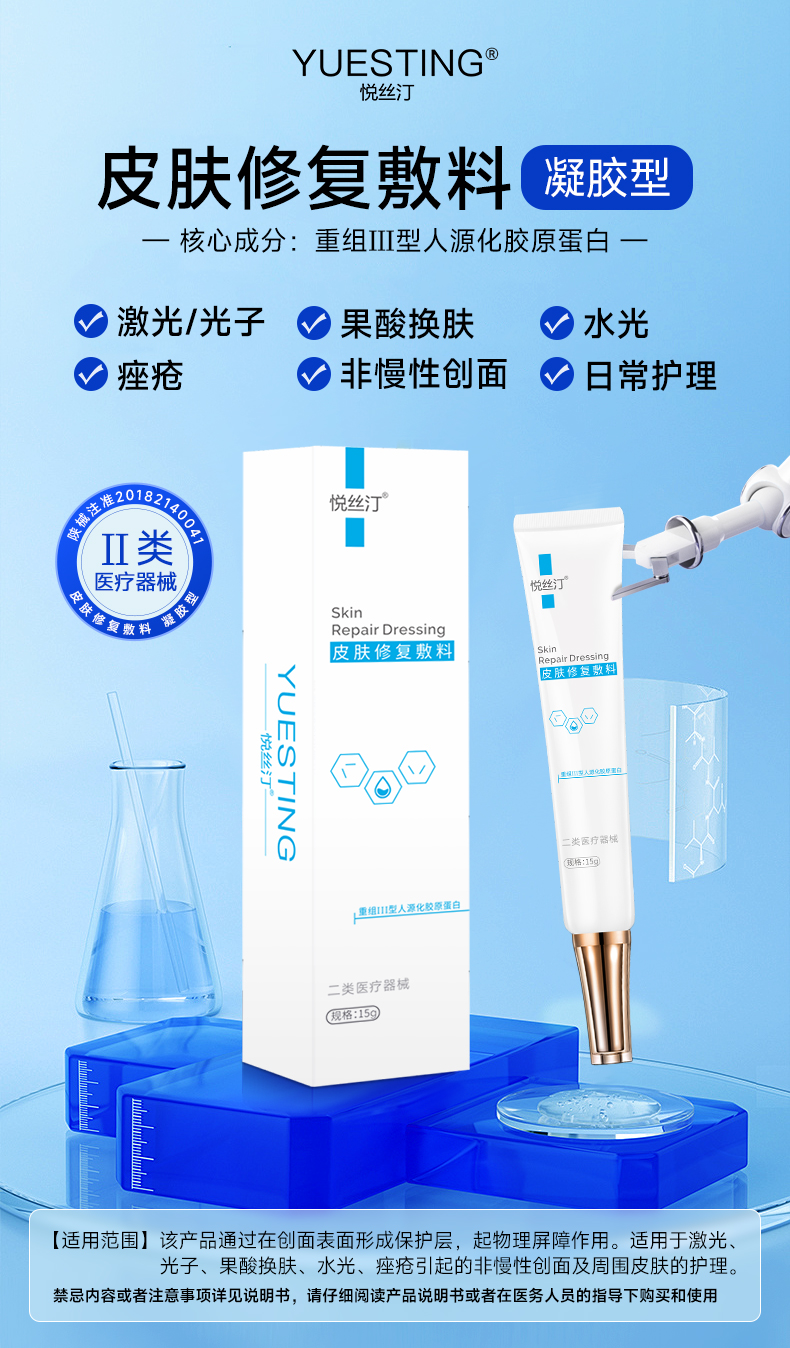 悦丝汀胶原蛋白修复凝胶痤疮水光光子创面修复皮肤修复敷料凝胶15g
