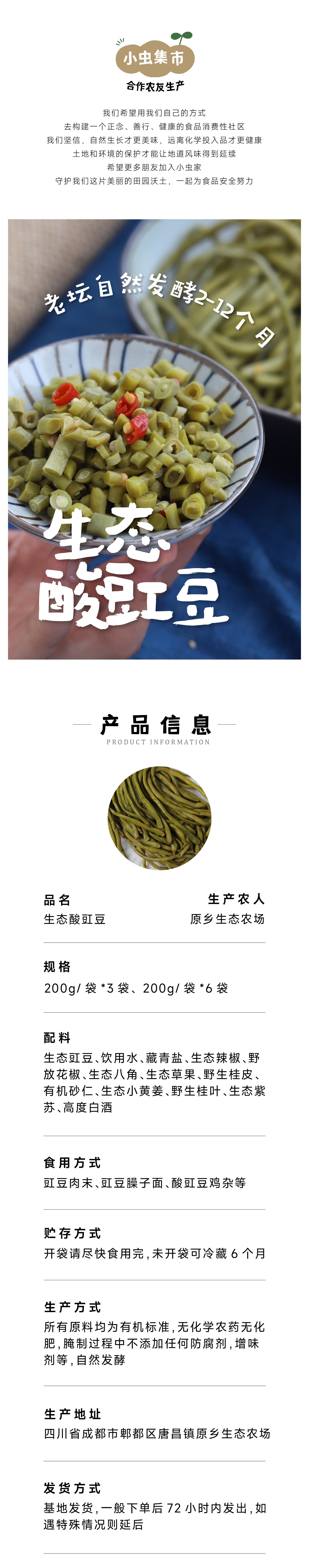 生态老坛酸豇豆/泡豇豆/酸豆角 200g/袋 | 合作农友生产,产自四川成都,生产者:原乡生态农场 *【公平贸易农人定价】