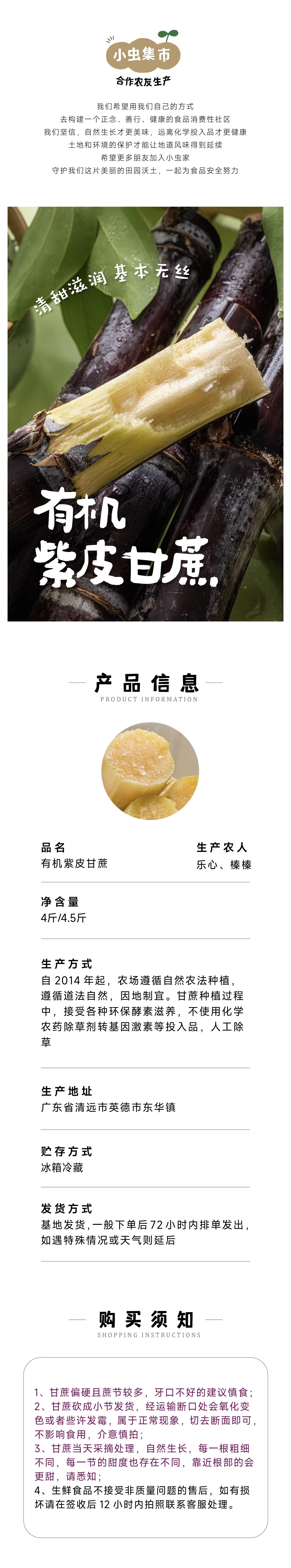 【限时买一赠一】有机紫皮甘蔗 4/4.5斤 | 合作农友生产,来自广东清远,生产者:乐心榛榛 *【公平贸易农人定价】
