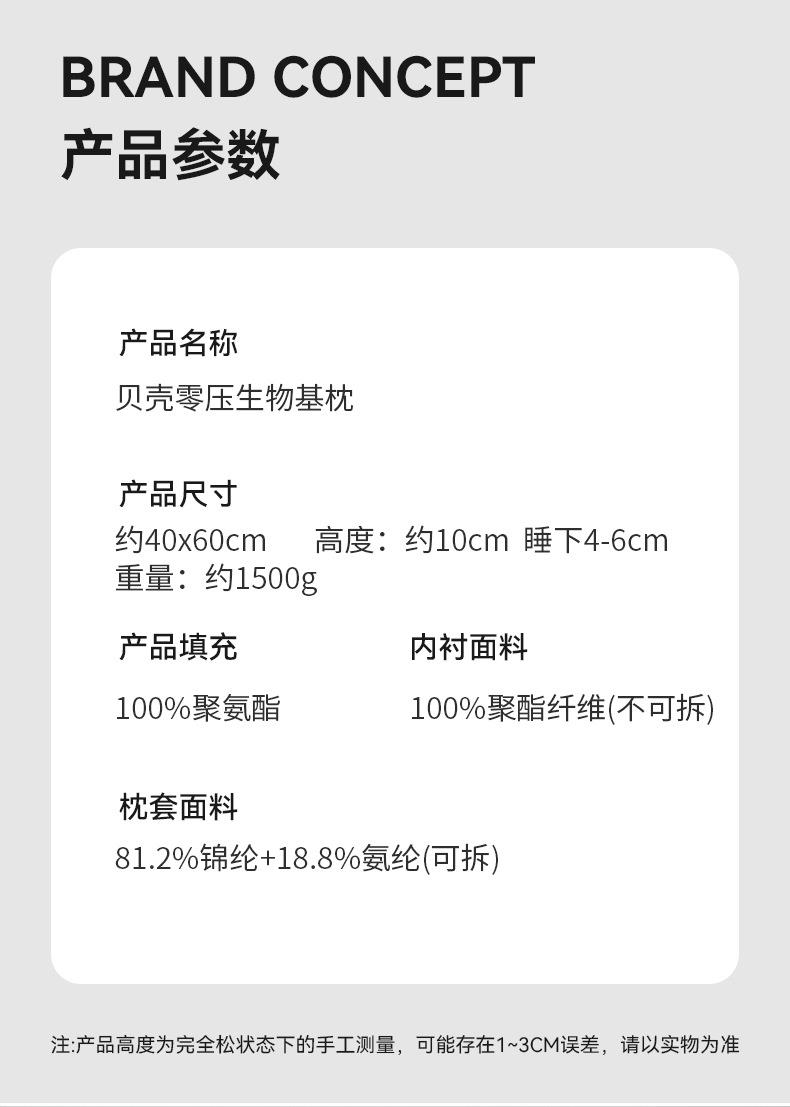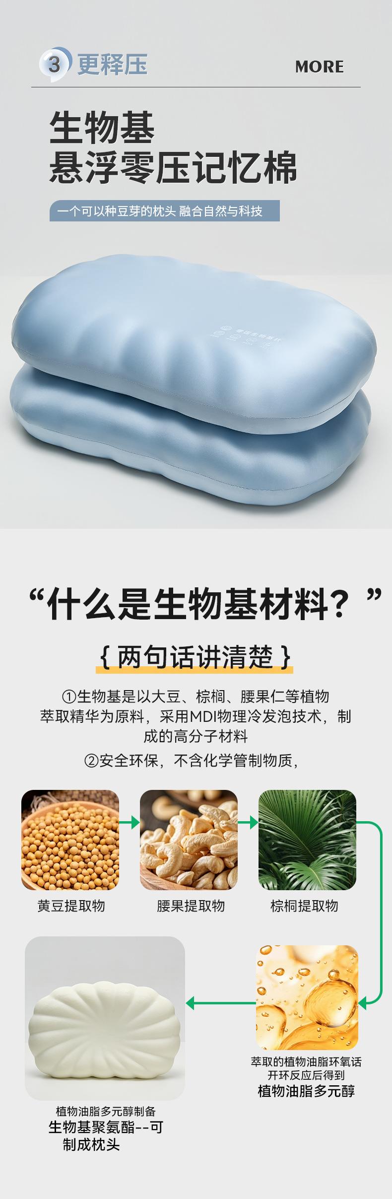 【贝壳生物基枕枕芯】慢回弹零压记忆枕分区枕