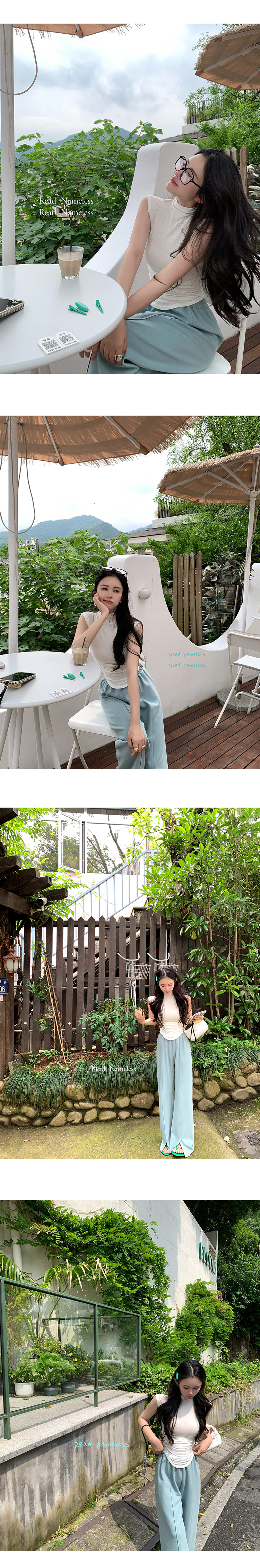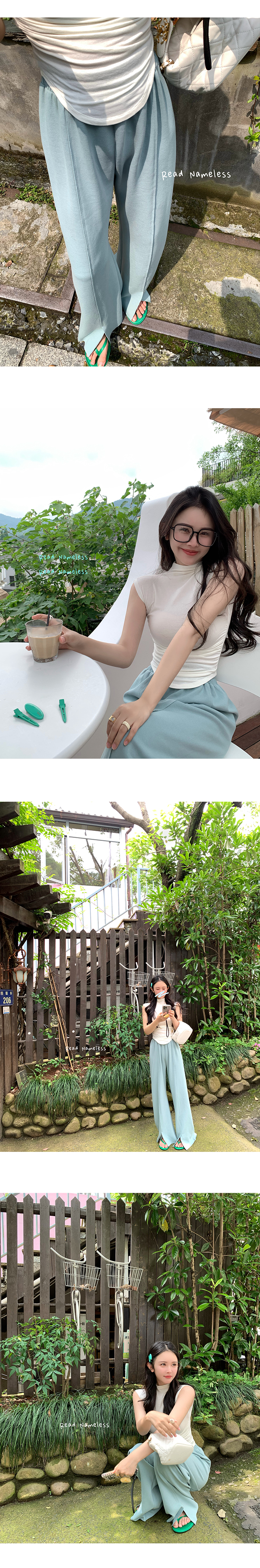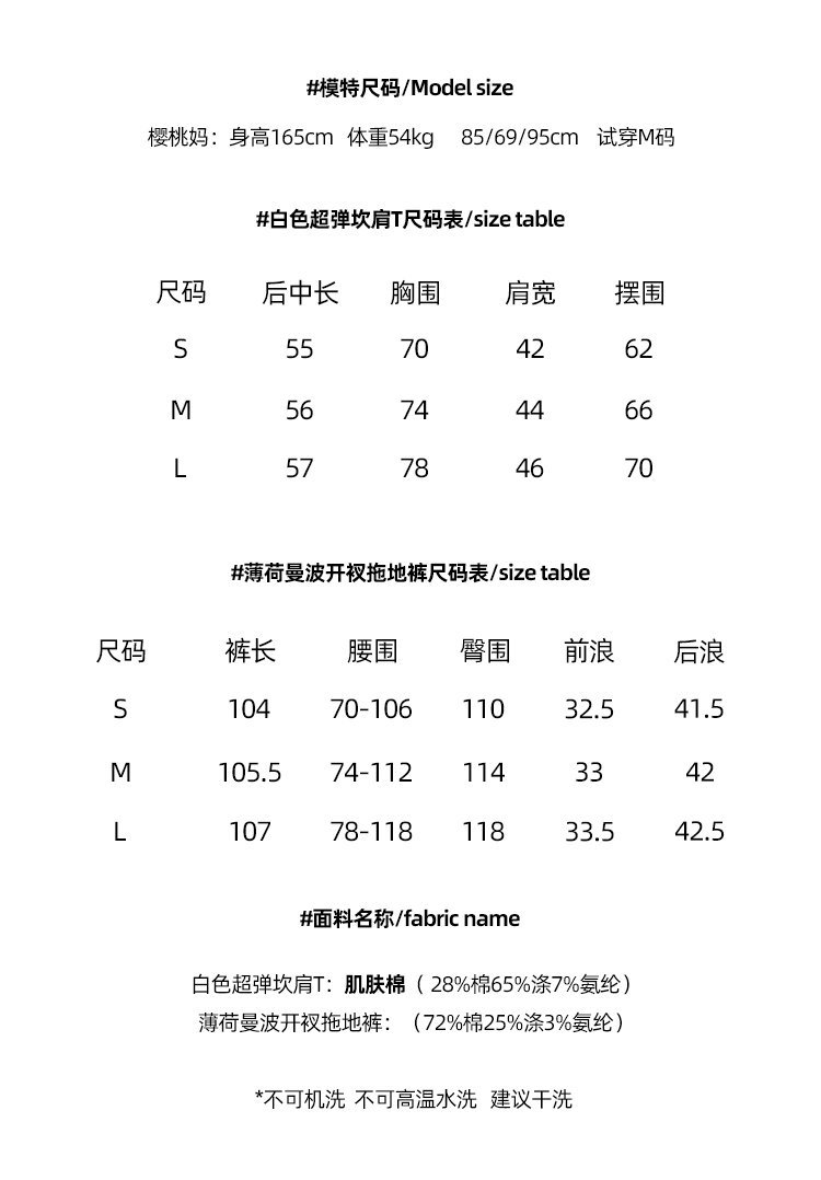Read Nameless/白色超弹坎肩T+薄荷曼波开衩拖地裤