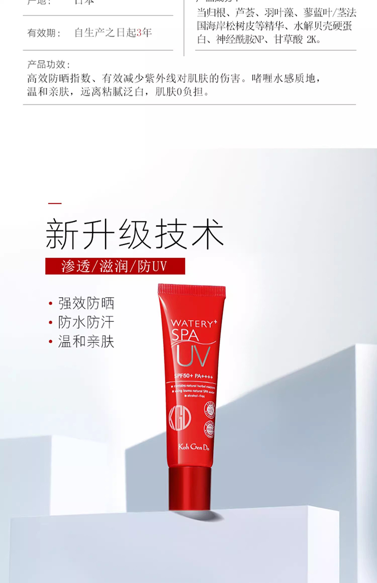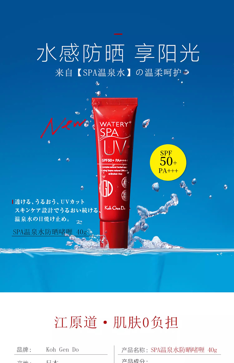 KohGenDo 江原道 SPA温泉水防晒啫哩SPF50+PA++++ 40g