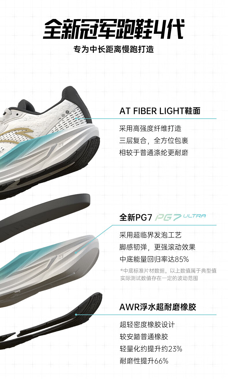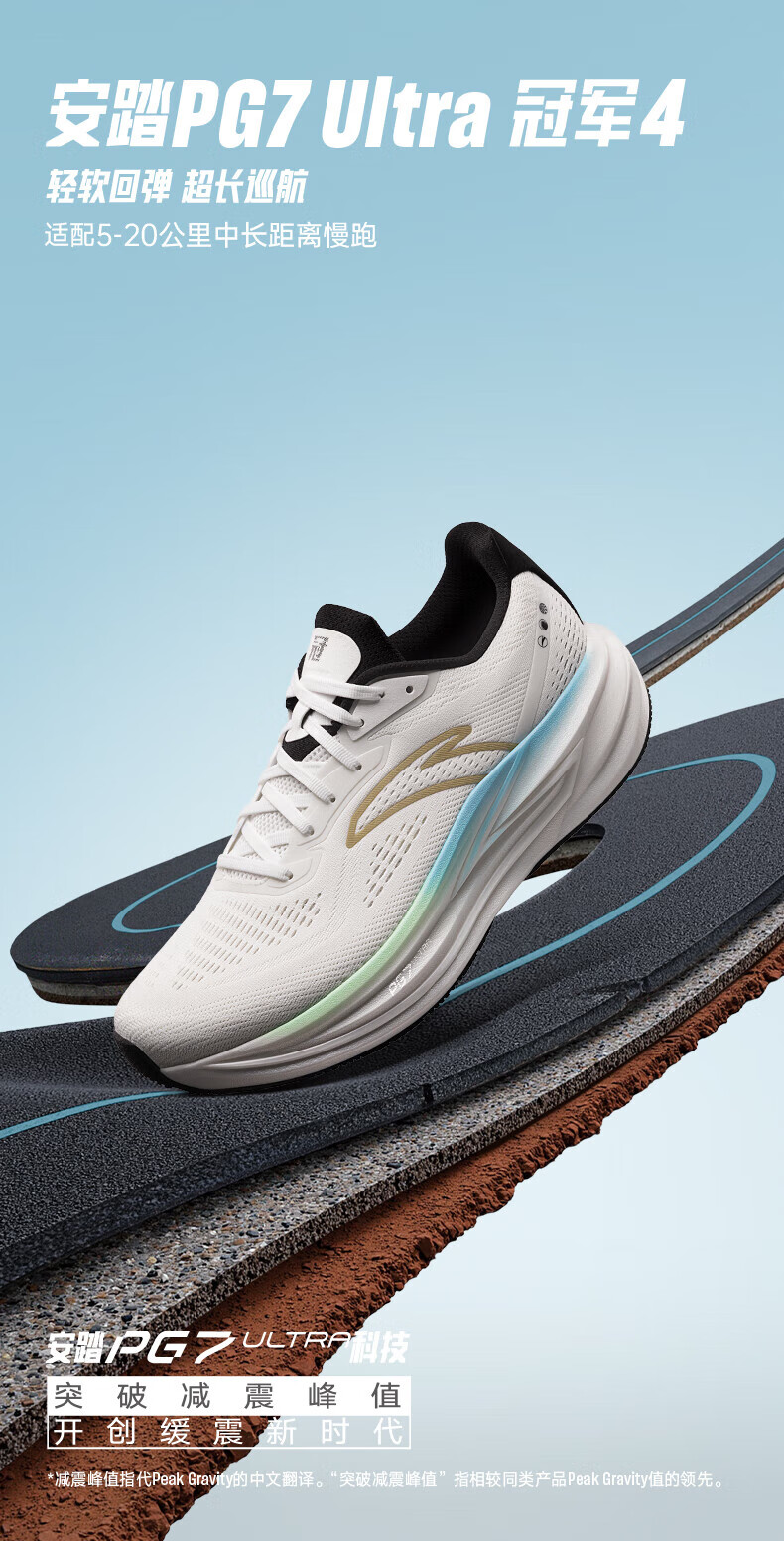 安踏冠军跑鞋4代丨PG7 Ultra缓震慢跑步鞋男夏季耐磨运动鞋112535562