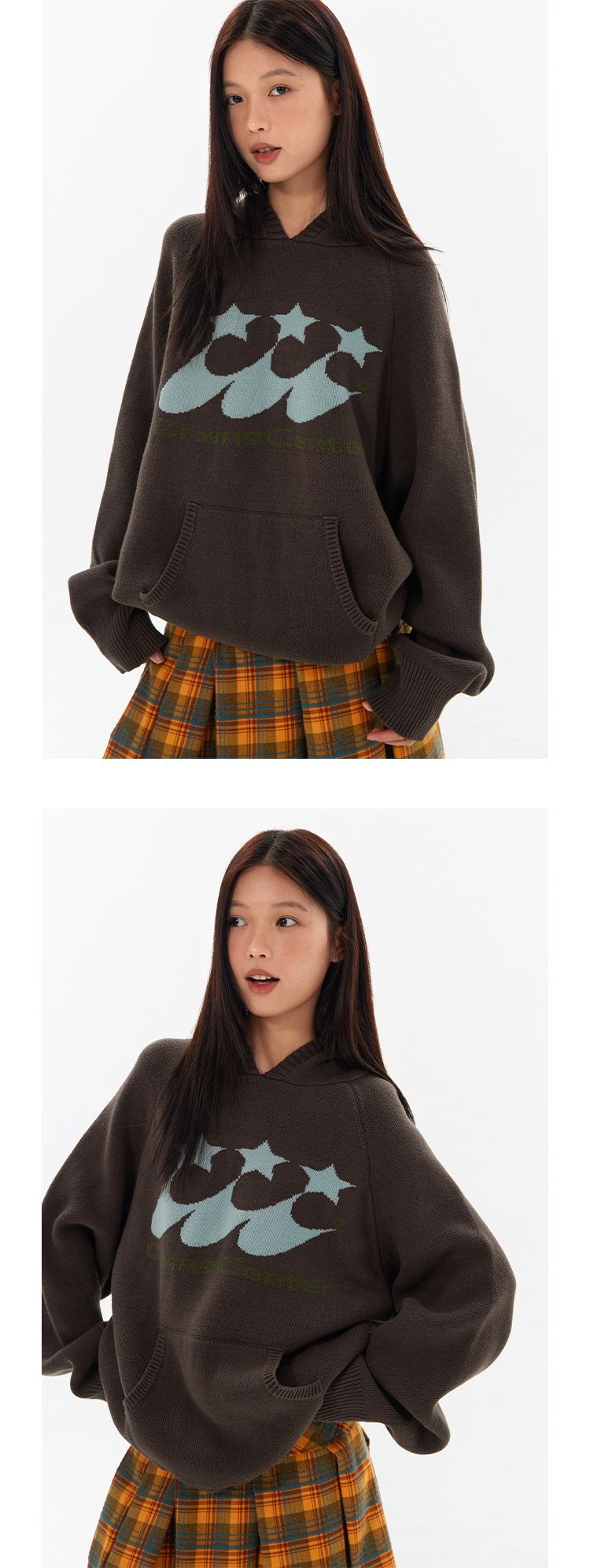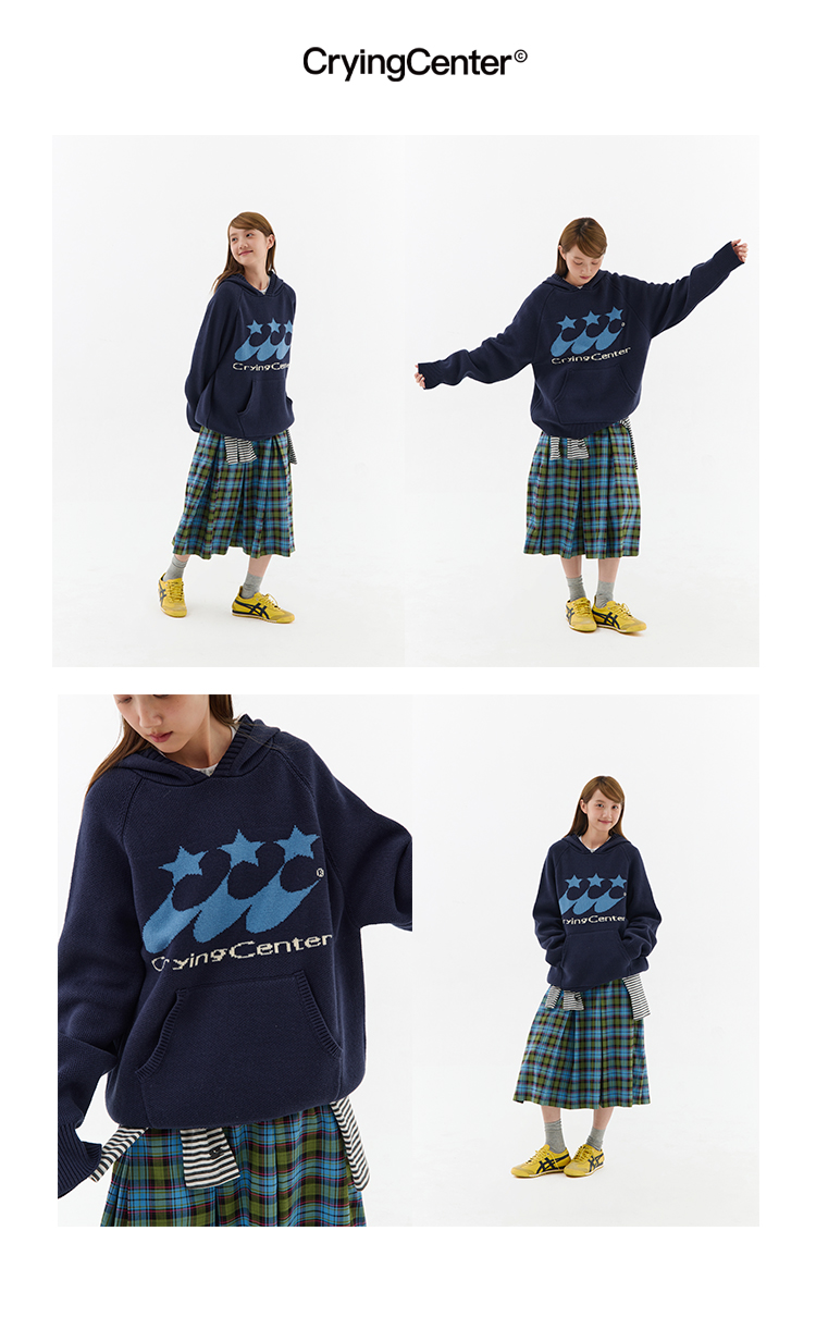 CryingCenter 复古彗星戴帽插袋针织毛衣 哭喊中心