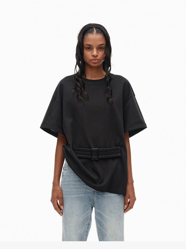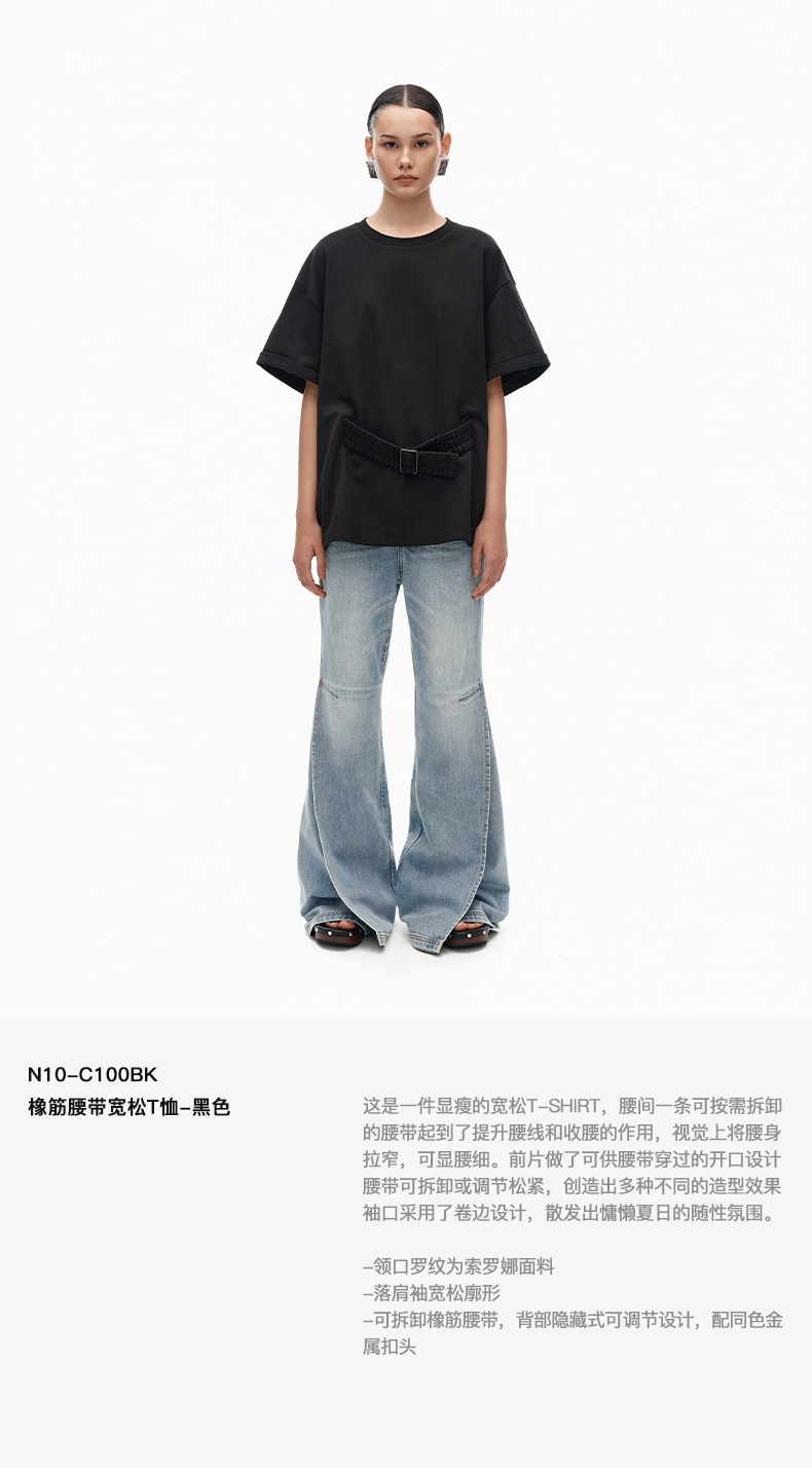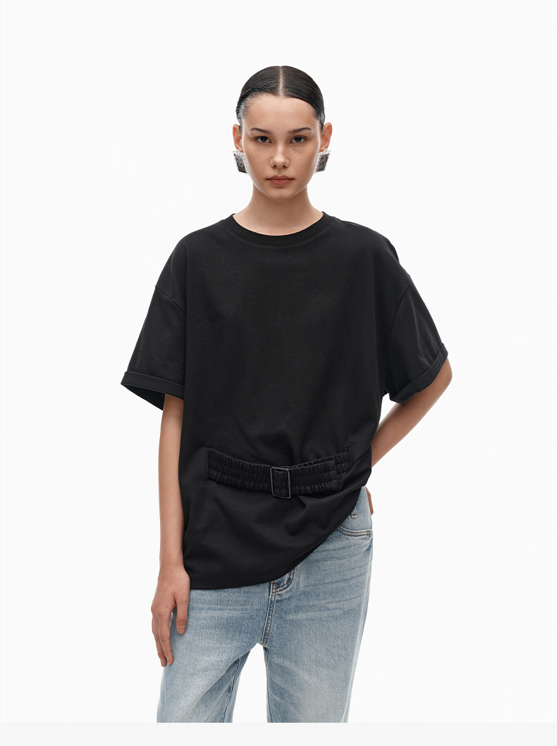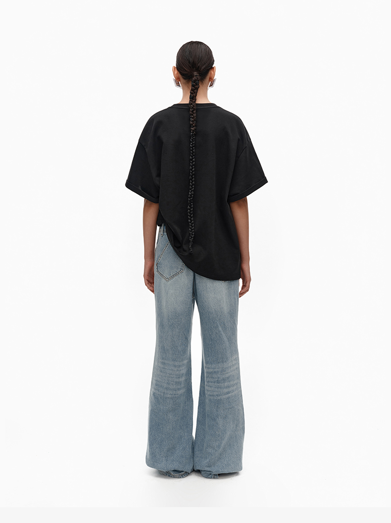 NUTH宽松黑色圆领设计感t恤女