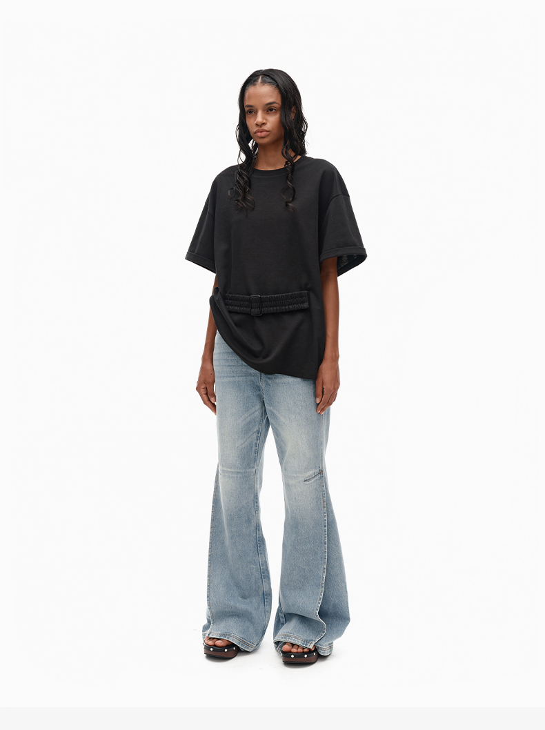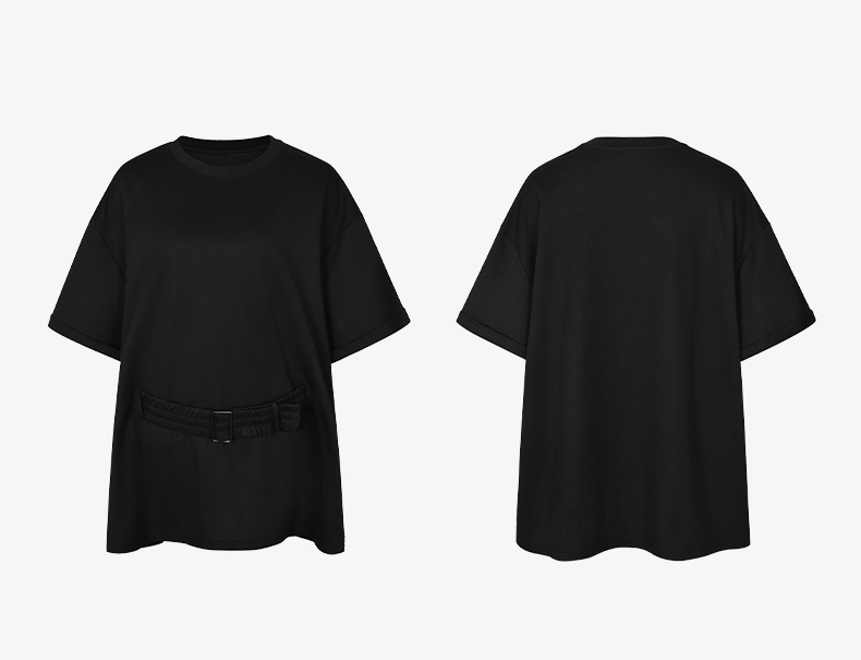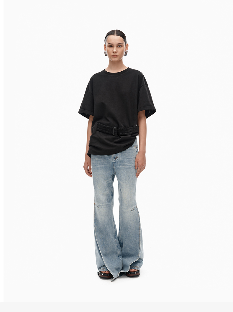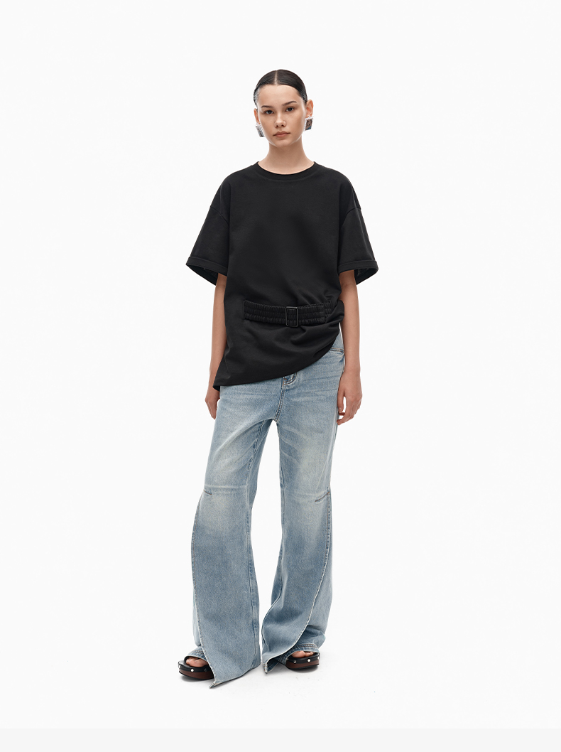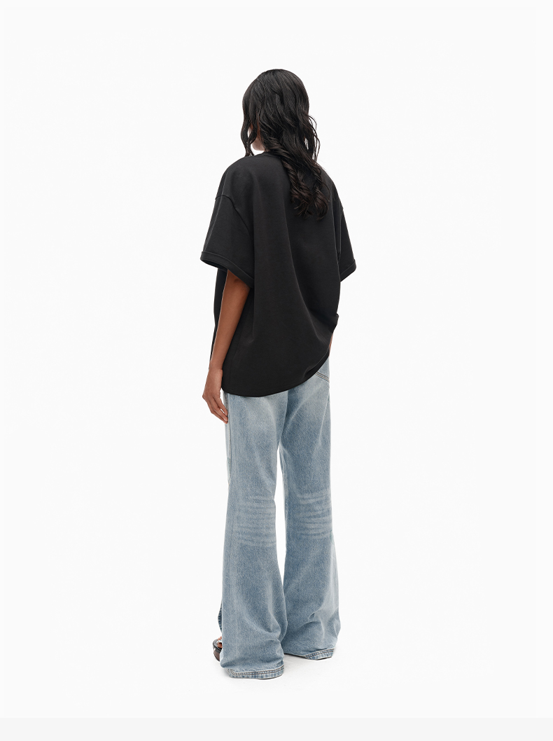 NUTH宽松黑色圆领设计感t恤女