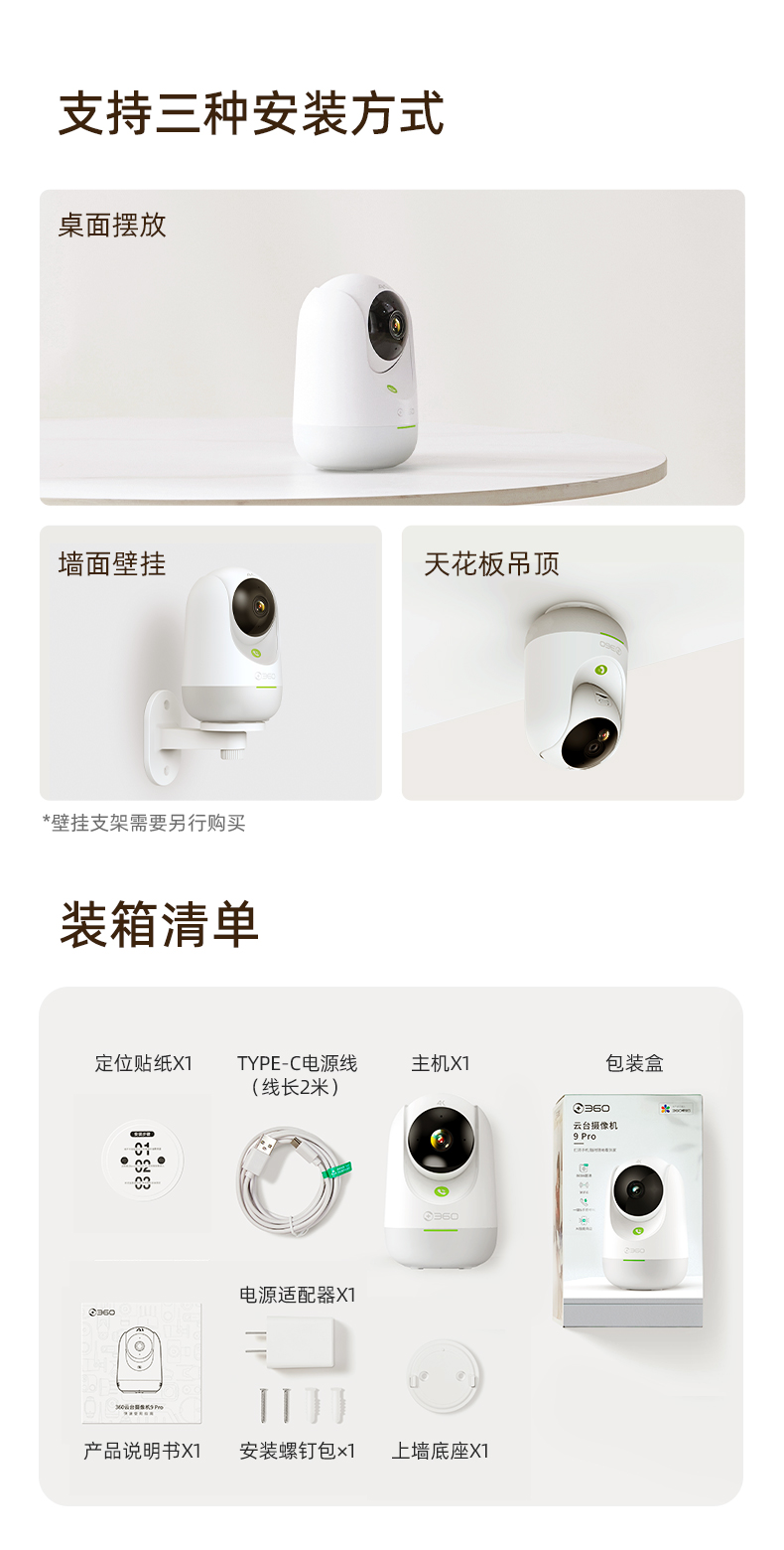 【超值套装】360智能摄像机9Pro+可视门铃6Pro 全屋智能看护套装 云台4K画质 宽动态逆光清晰 门铃360度全景监控