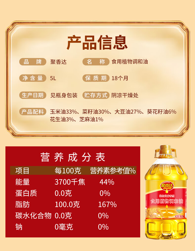 聚香达 花生芝麻香型食用植物调和油4L