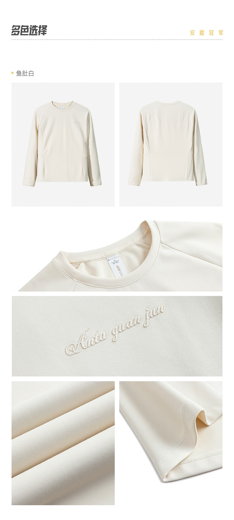 安踏冠军全天候系列女士加绒长袖T恤保暖内搭圆领针织衫162440401