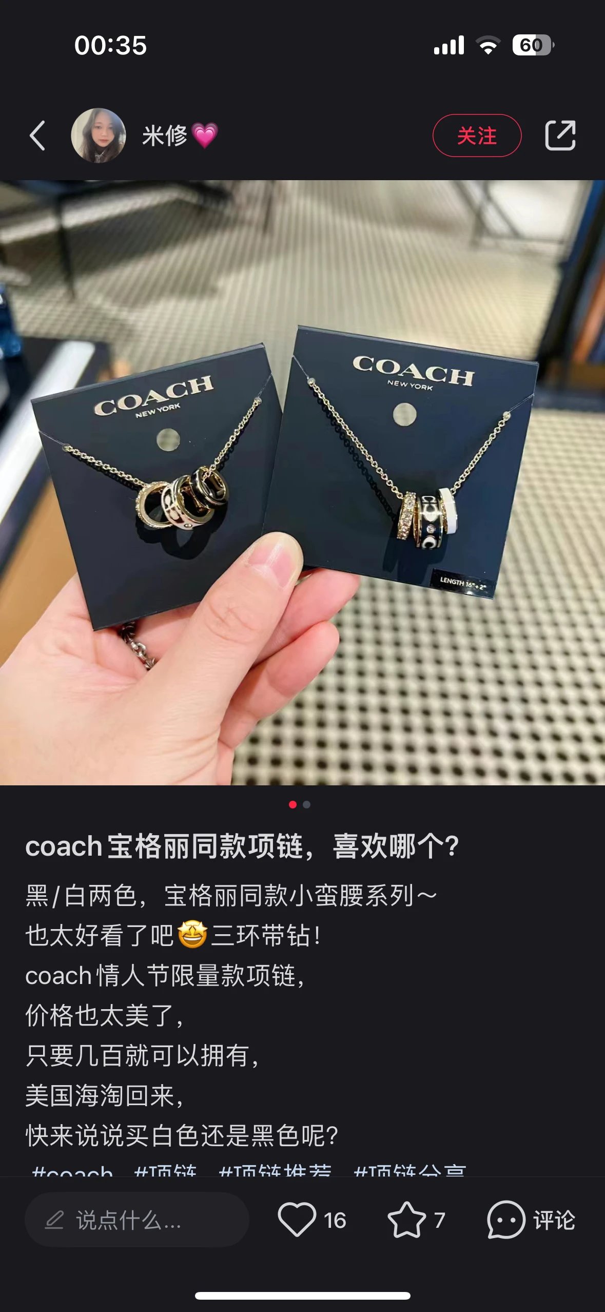 Coach 3环项链
