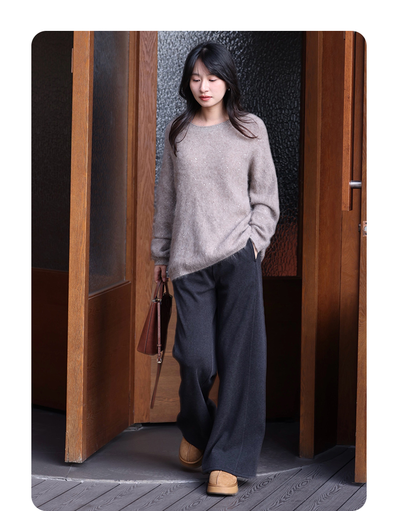 【Beau Muse】时尚潮流休闲百搭山羊绒蚕丝微喇休闲裤XXK