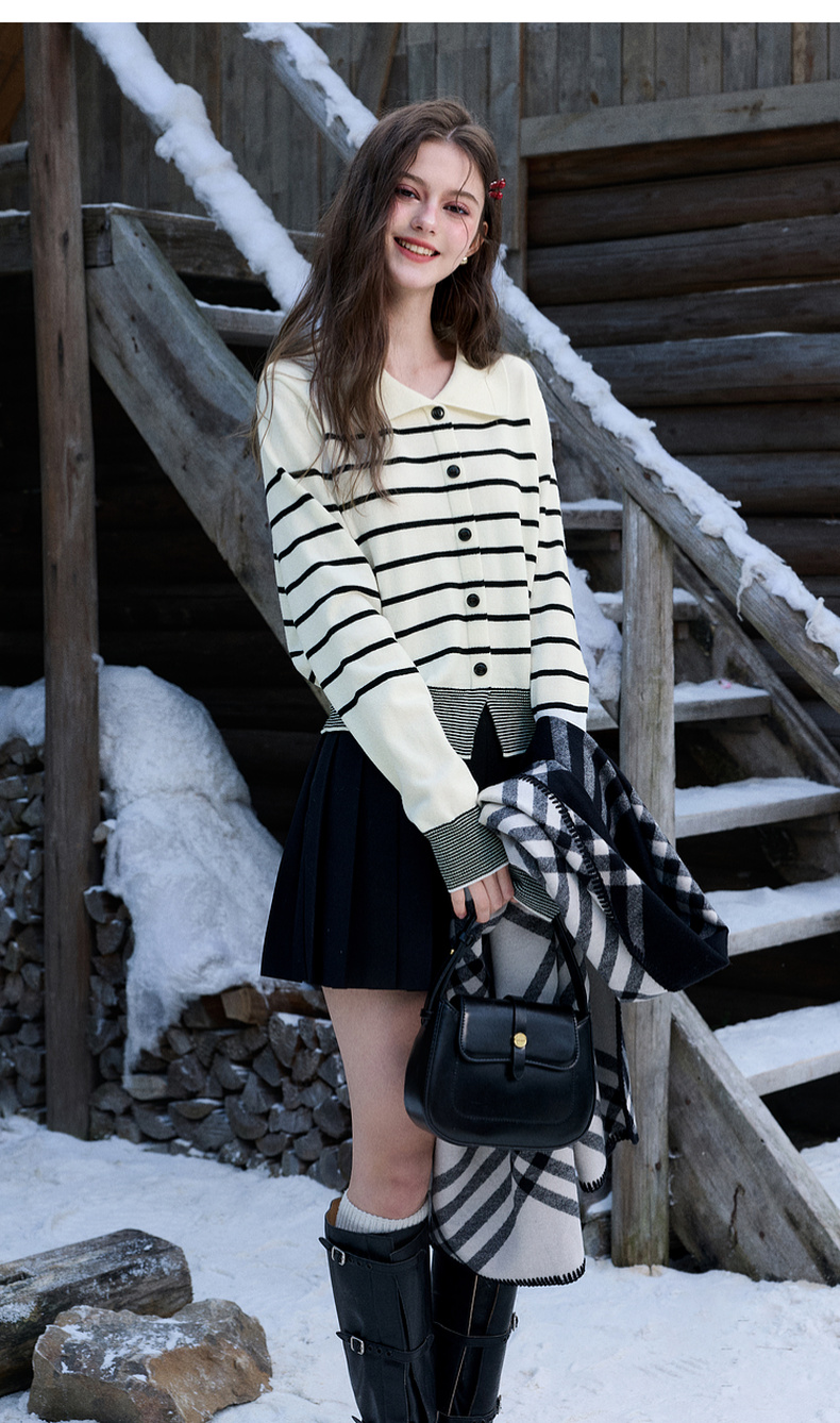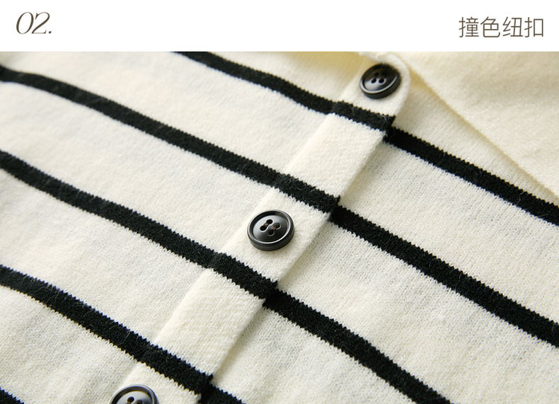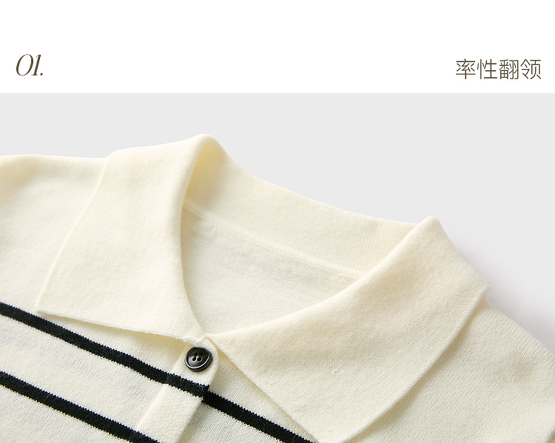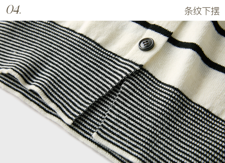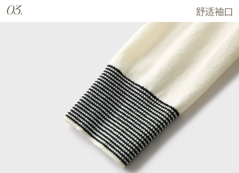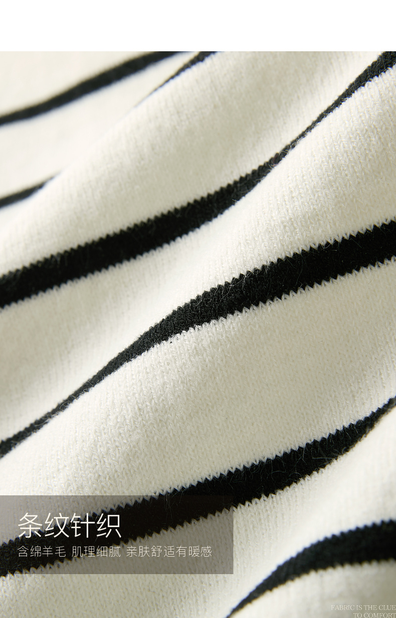 三彩2025冬季新款休闲简约撞色条纹针织衫长袖翻领套头毛衫上衣M