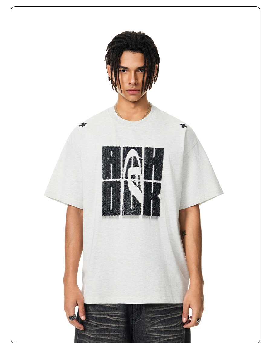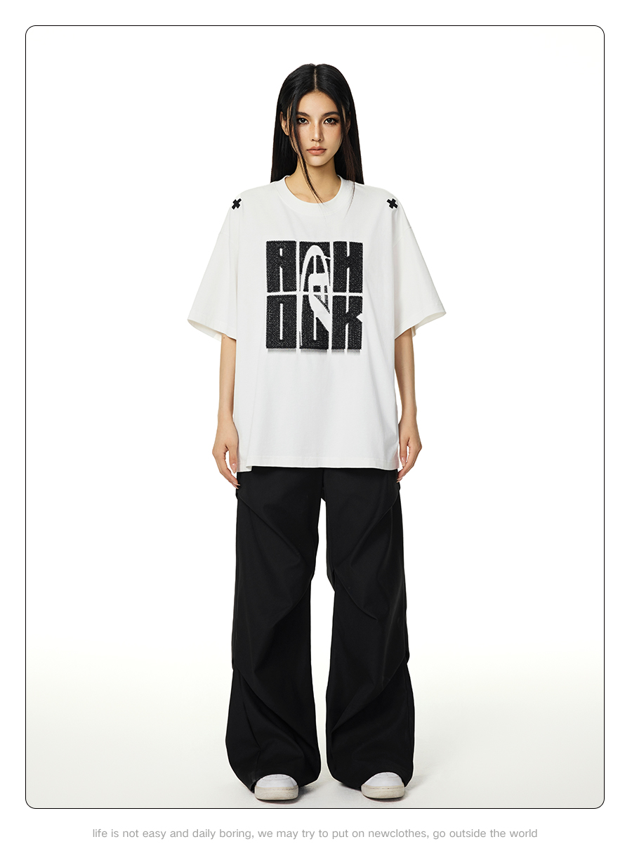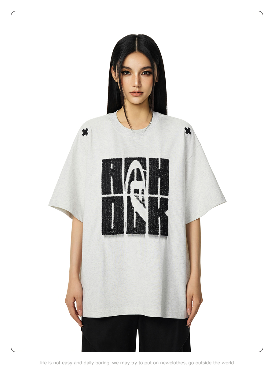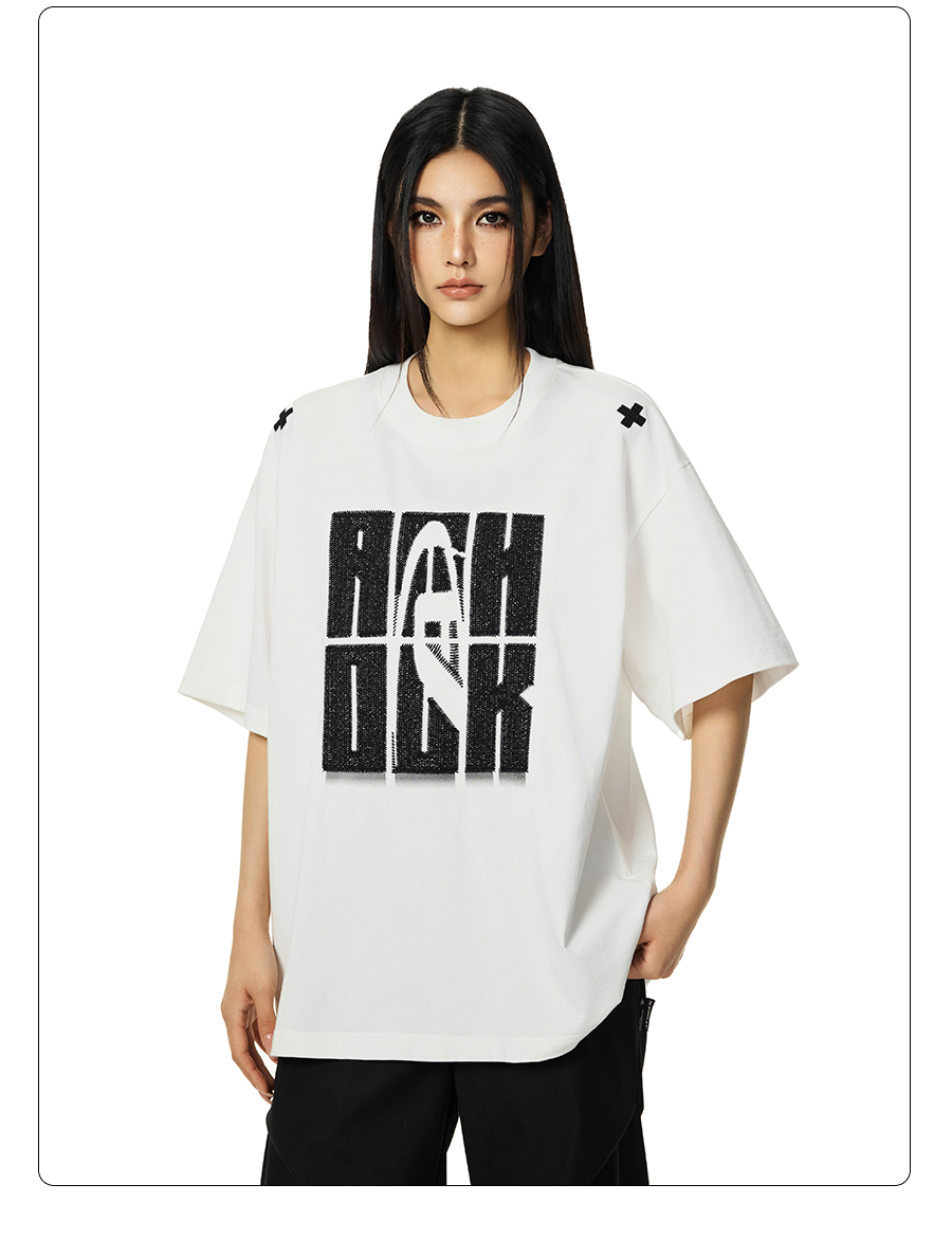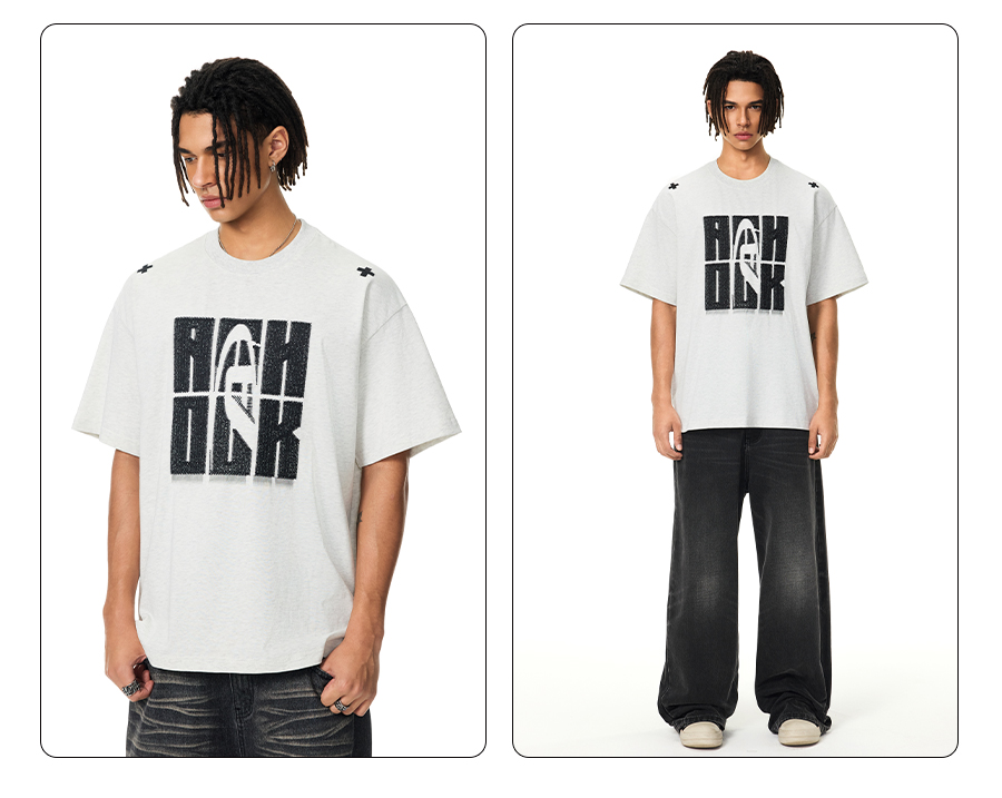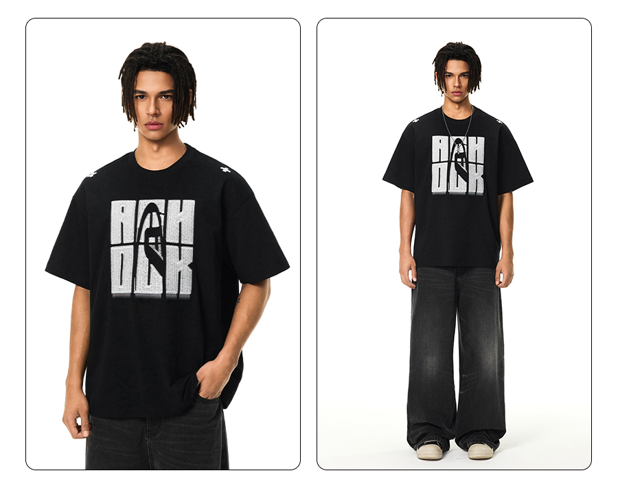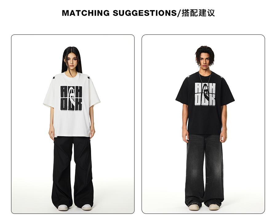 【Achock官方店】美式重工刺绣短袖T恤男女国潮新款宽松情侣上衣